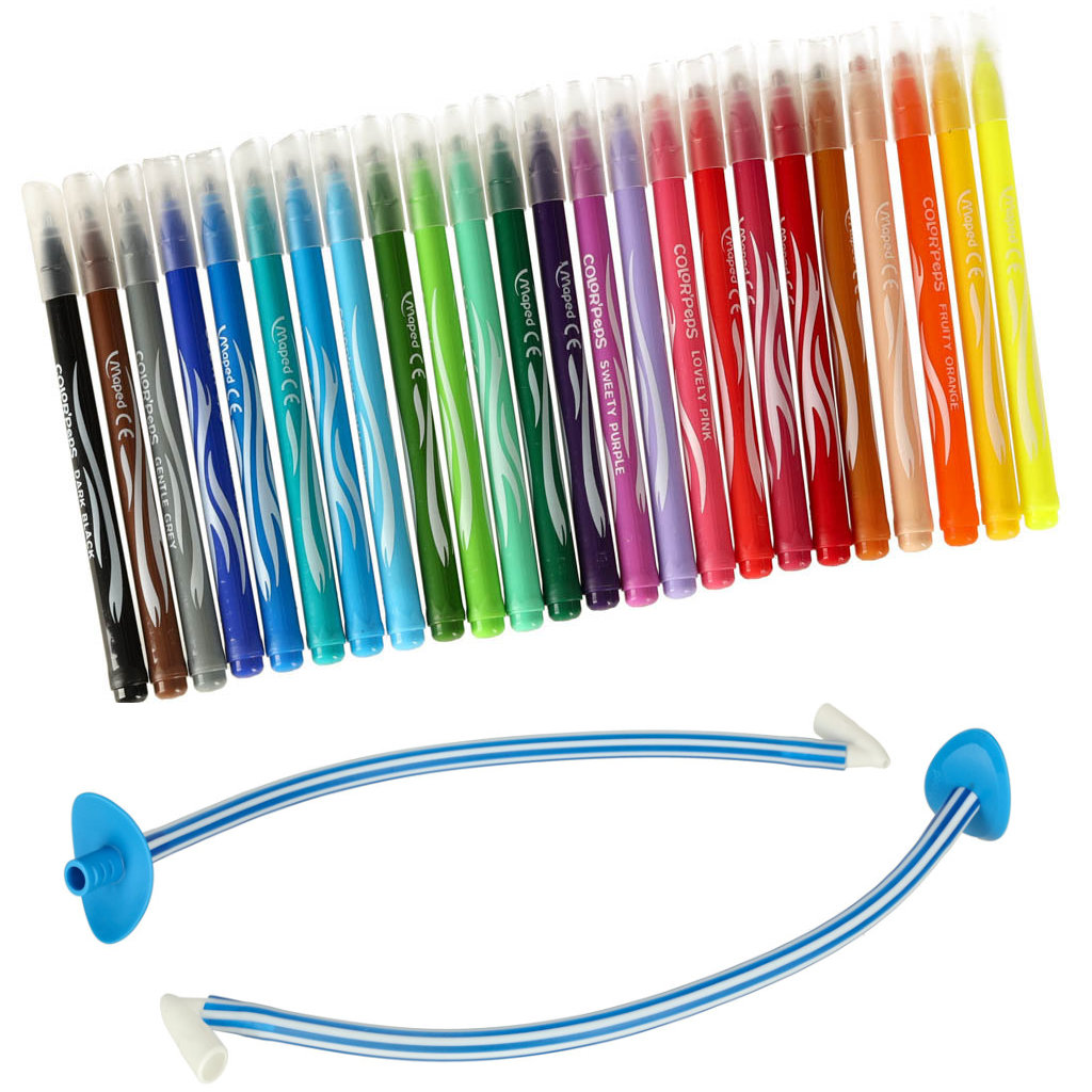 * Komplektis 24 erivärvi vildikat, 2 puhumiskõrt ja 5 A5 paberit