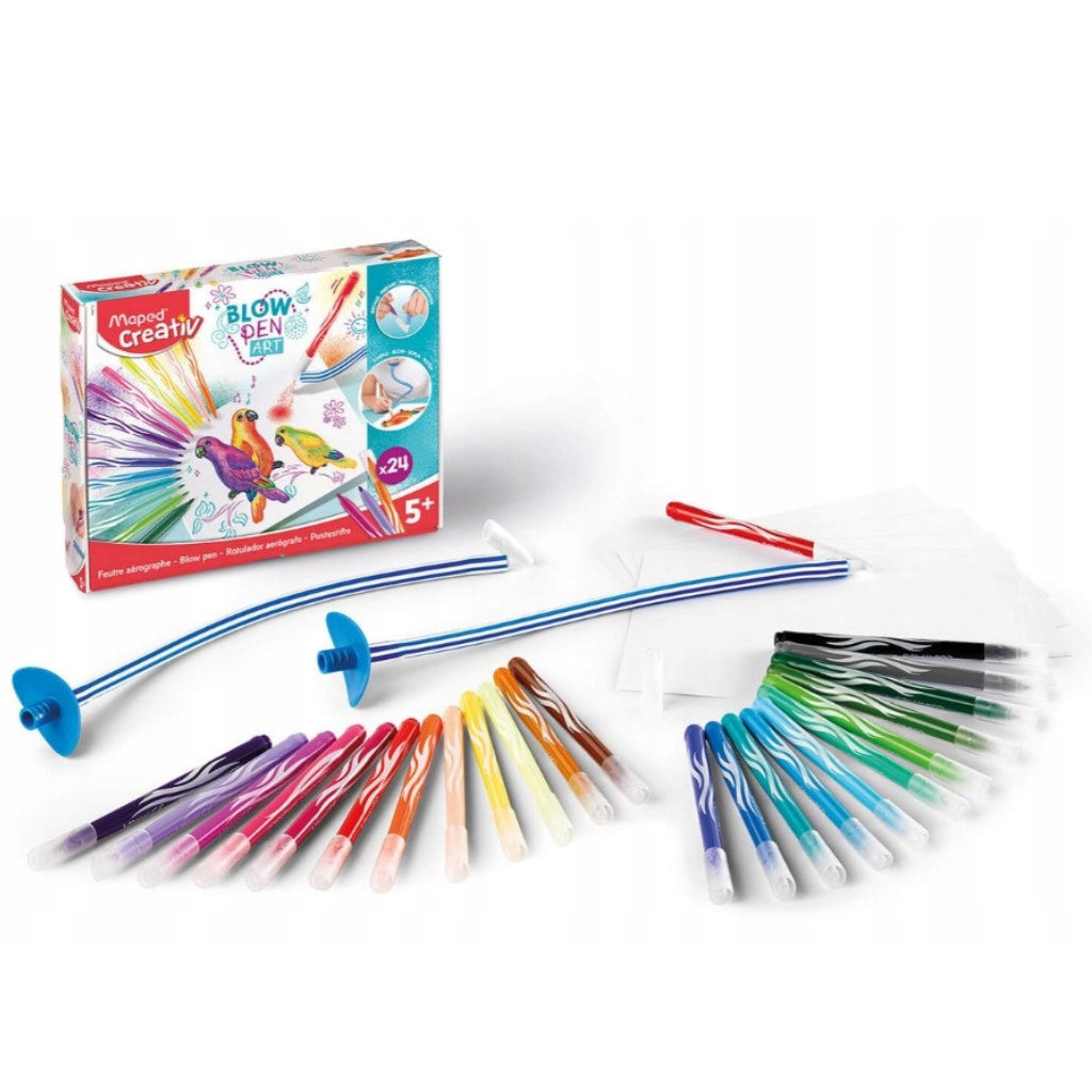 * Spetsiaalse puhumiskõrre ühes otsas on hoidik vildika jaoks ning teises otsas huulik, kust sisse puhudes pihustub värv paberile laiali