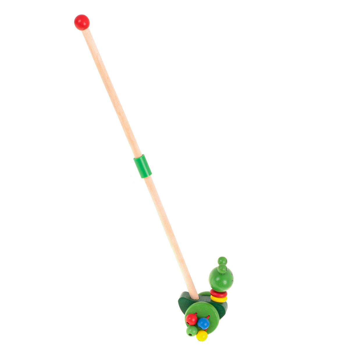 Puidust lükatav konn pulgaga – roheline kõndima õppimise mänguasi