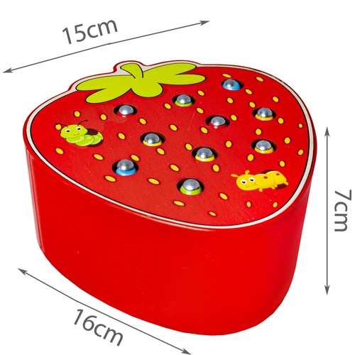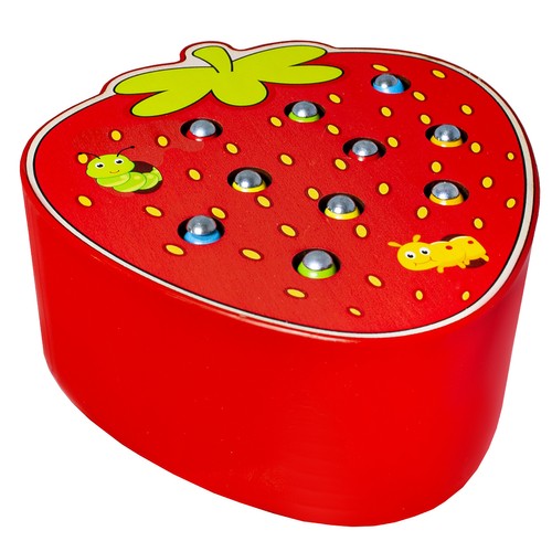 Aseta maasikas tasasele pinnale ja kasuta magnetiga pulka, et püüda augus peituvad ussikesed välja. Seejärel aseta need tagasi oma pesadesse – harjutus, mis treenib täpsust ja rahulikku tegutsemist.