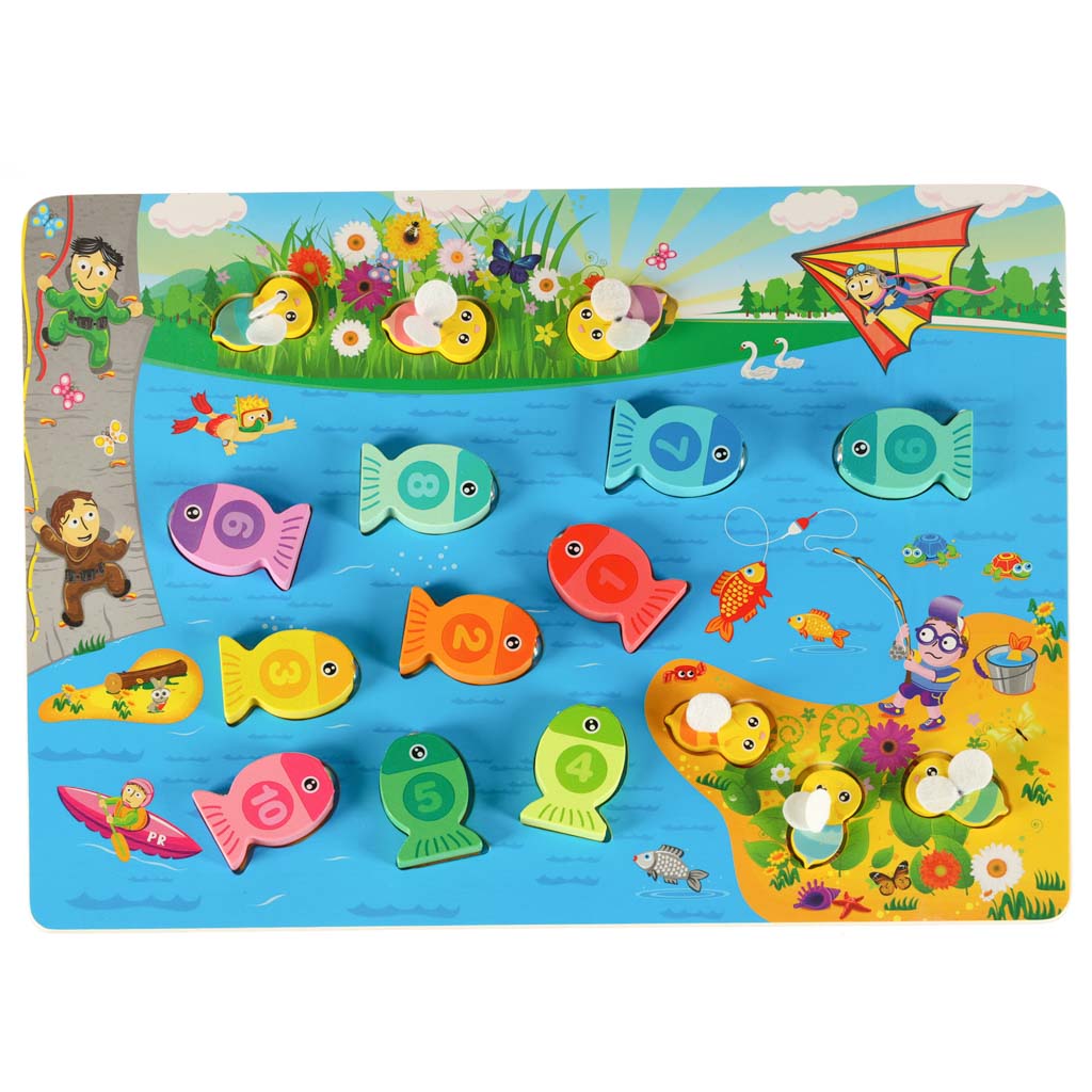 Osavusmäng magnetiga: püüa kala õngega – iga kala sees on magnet, mille abil saab selle õngega välja püüda. See on lõbus, kuid nõuab keskendumist ja täpsust, mis arendab kannatlikkust ja tähelepanu. Samuti saab suunata last kalasid numbrite järjekorras püüdma.