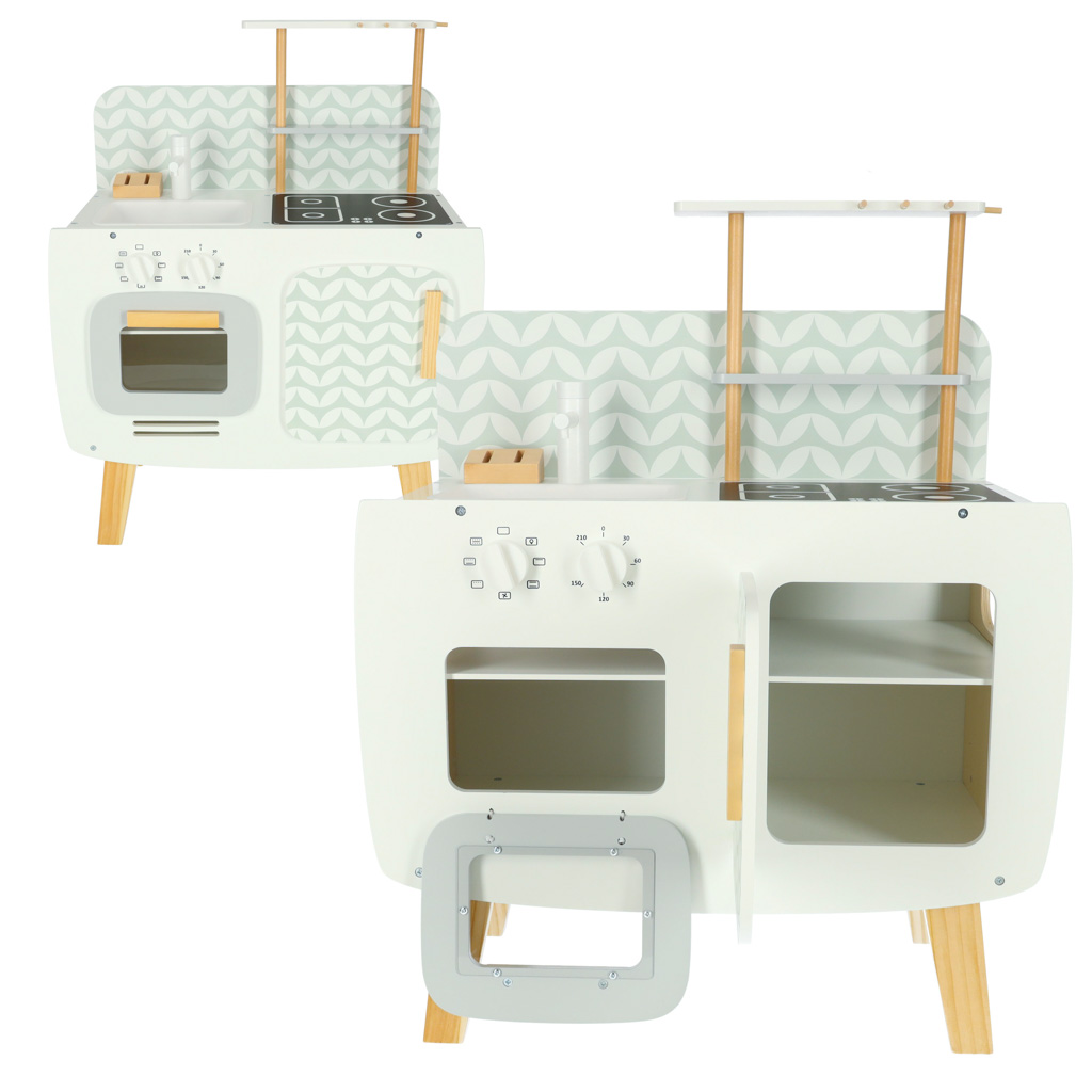 Puidust mänguköök pakub lapsele võimalust avastada kokkamise maailma mängulisel ja looval viisil. See on suurepärane valik väikesele kokandushuvilisele, kes soovib matkida igapäevaseid köögitoimetusi, valmistada mänguroogasid ja luua oma fantaasiamaailmas tõelise koduse köögi. Retrostiilis kujundus ja heledad toonid muudavad selle mänguköögi sobivaks paljudesse lastetubadesse, kus see on ühtaegu nii mänguasi kui ka sisustuselement.