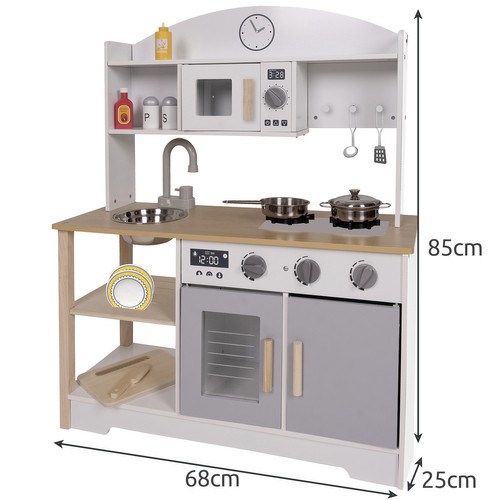 Mikrolaineahi, ahi, kraanikauss ja kell aitavad lapsel luua päris köögile sarnaseid olukordi ning arendavad loovust ja iseseisvat mängu.