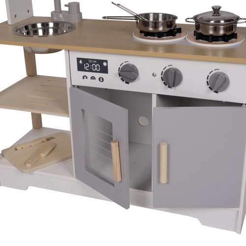Too lapse tuppa oma väike restoran ja lase fantaasial juhtida. Puidust mänguköök pakub realistlikku rollimängu tänu klõpsuvatele nuppudele, avatavatele ustele ja rikkalikule tarvikute komplektile. Tugev konstruktsioon ja läbimõeldud detailid teevad mängimise kaasahaaravaks ning sobivad suurepäraselt igapäevaste koduste tegevuste jäljendamiseks.