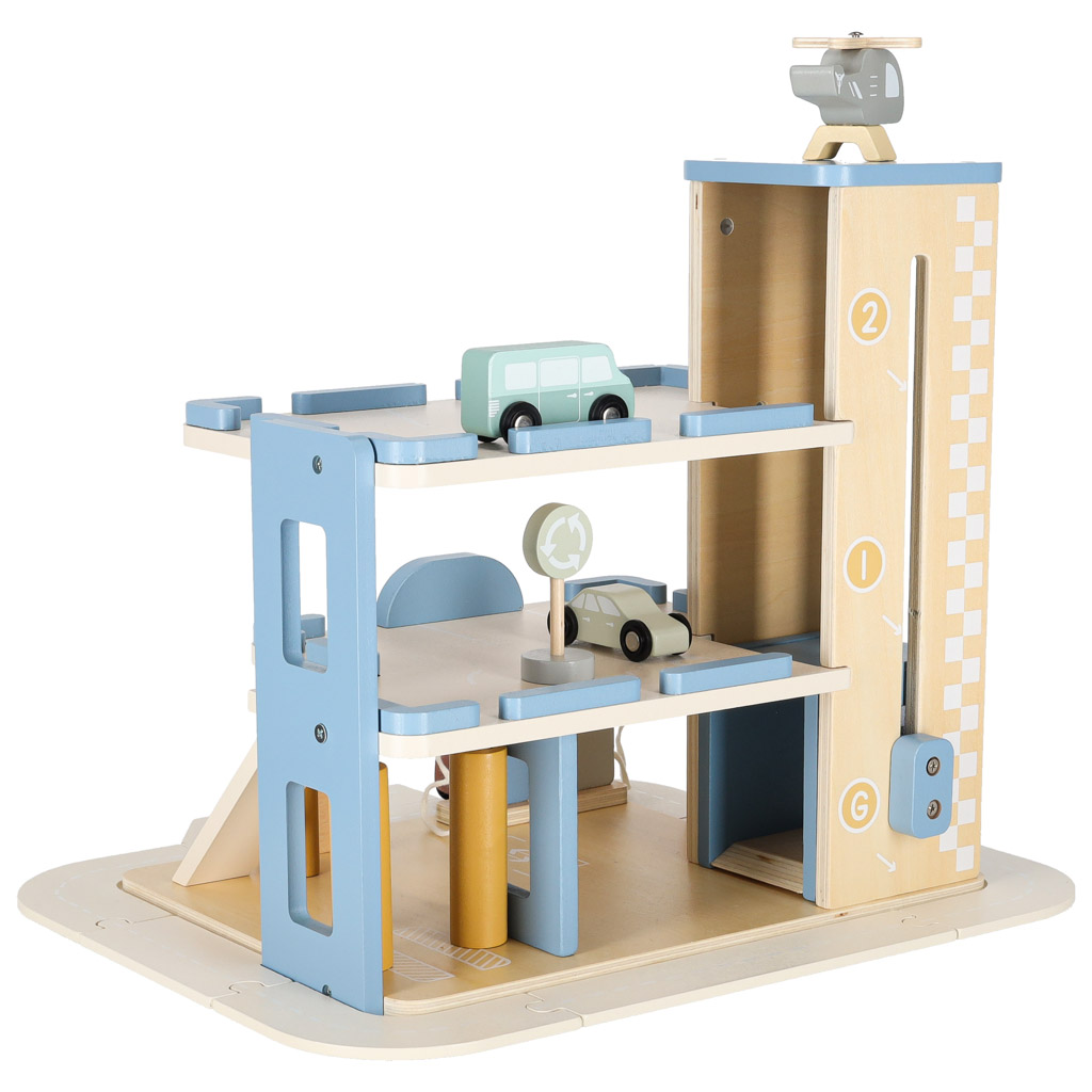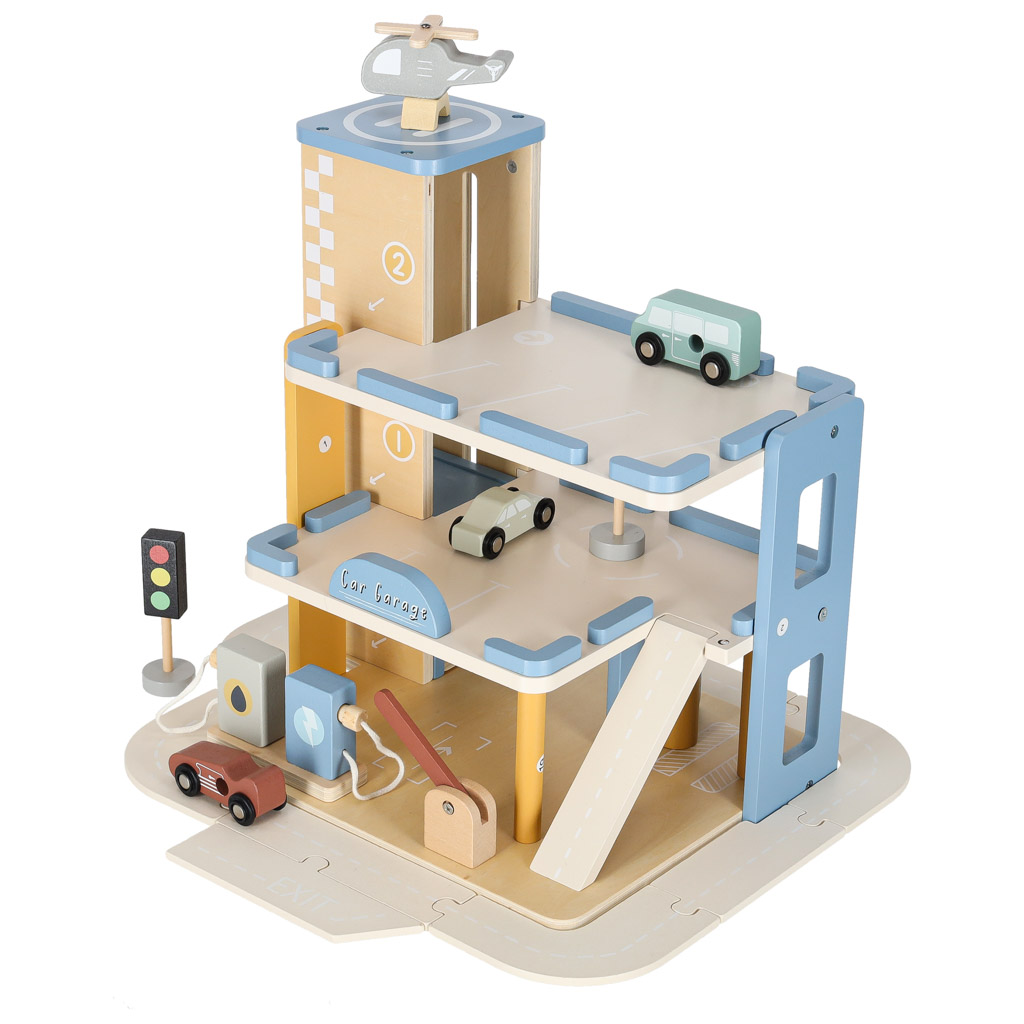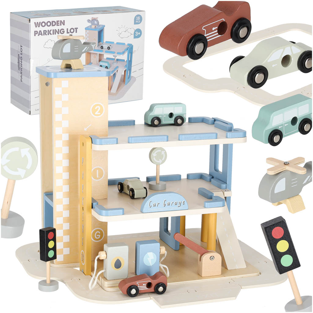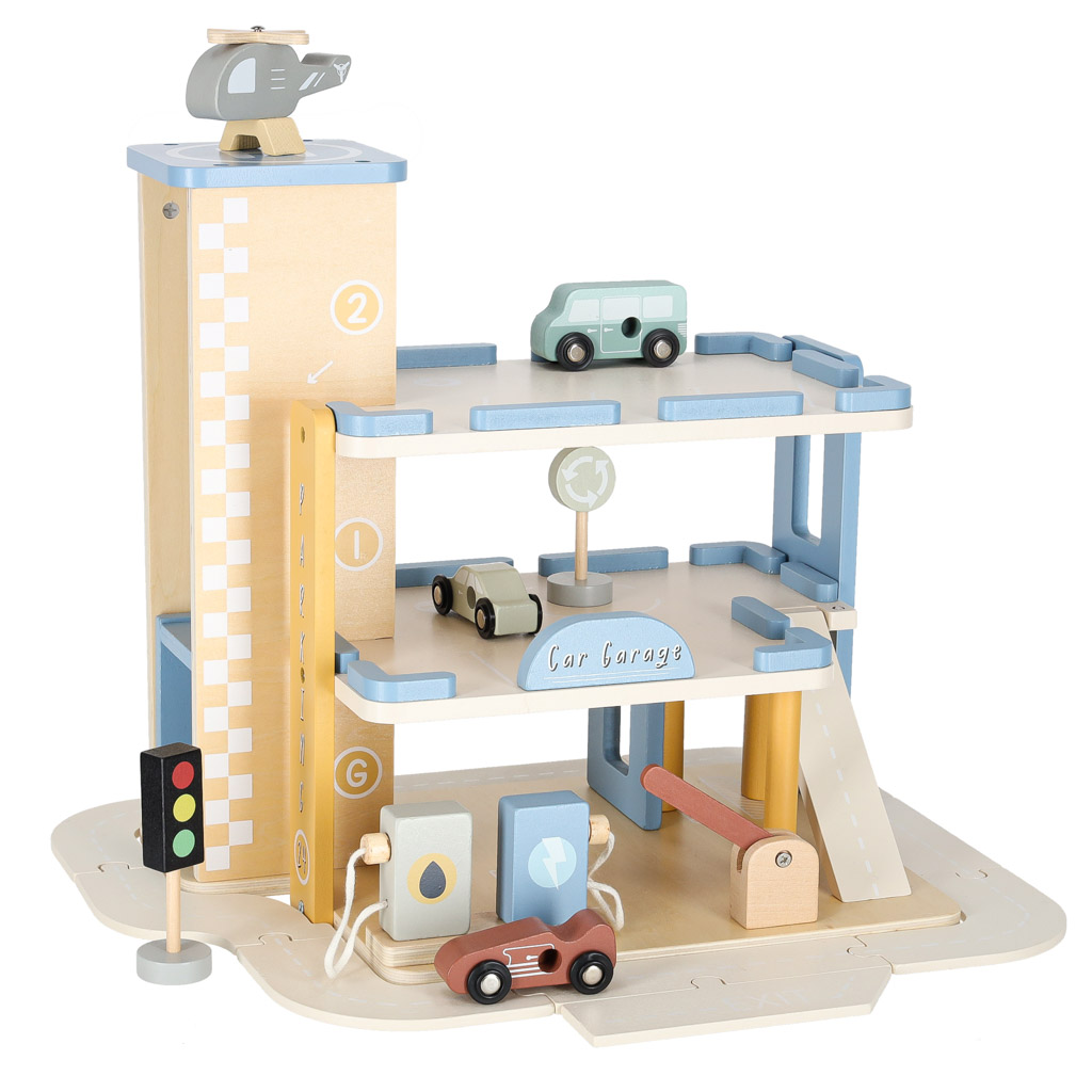 Too lastetuppa põnev linnaliikluse maailm: mitmekorruseline puidust parkimismaja koos liftiga ja tanklaga pakub tundideks loovat rollimängu. Realistlikud detailid aitavad lapsel õppida liiklusreegleid ning arendada kujutlusvõimet. Tugevatest ja ohututest materjalidest valmistatud komplekt sobib suurepäraselt väikesele autohuvilisele.