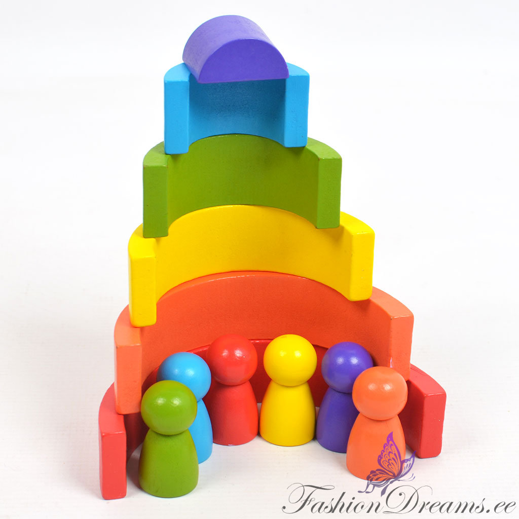 * Komplektis 6 kaarjat erivärvilist klotsi ja 6 figuuri