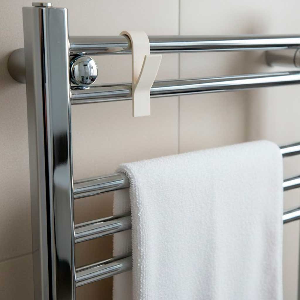 See kreemjas radiaatori riidekonks on ideaalne lahendus igasse vannituppa. See võimaldab säästa ruumi ja kiirendab niiskete rätikute, hommikumantlite ja muude rõivaste kuivamist.