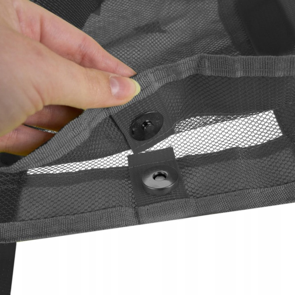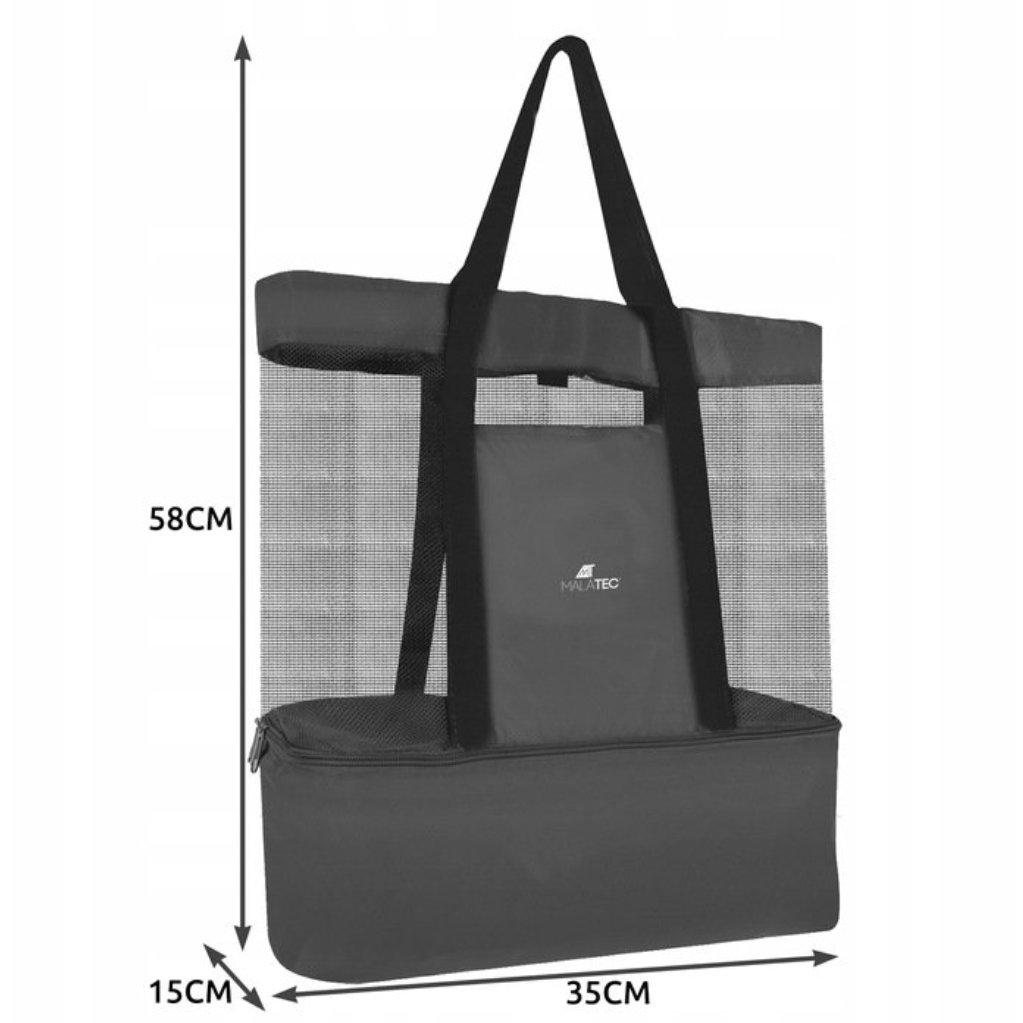 * Pealmine osa on aga hästi hingavast võrk-materjalist. Sinna saab panna näiteks rätiku, piknikuteki, riided jms – ka siis kui need kasutades niiskeks on saanud.