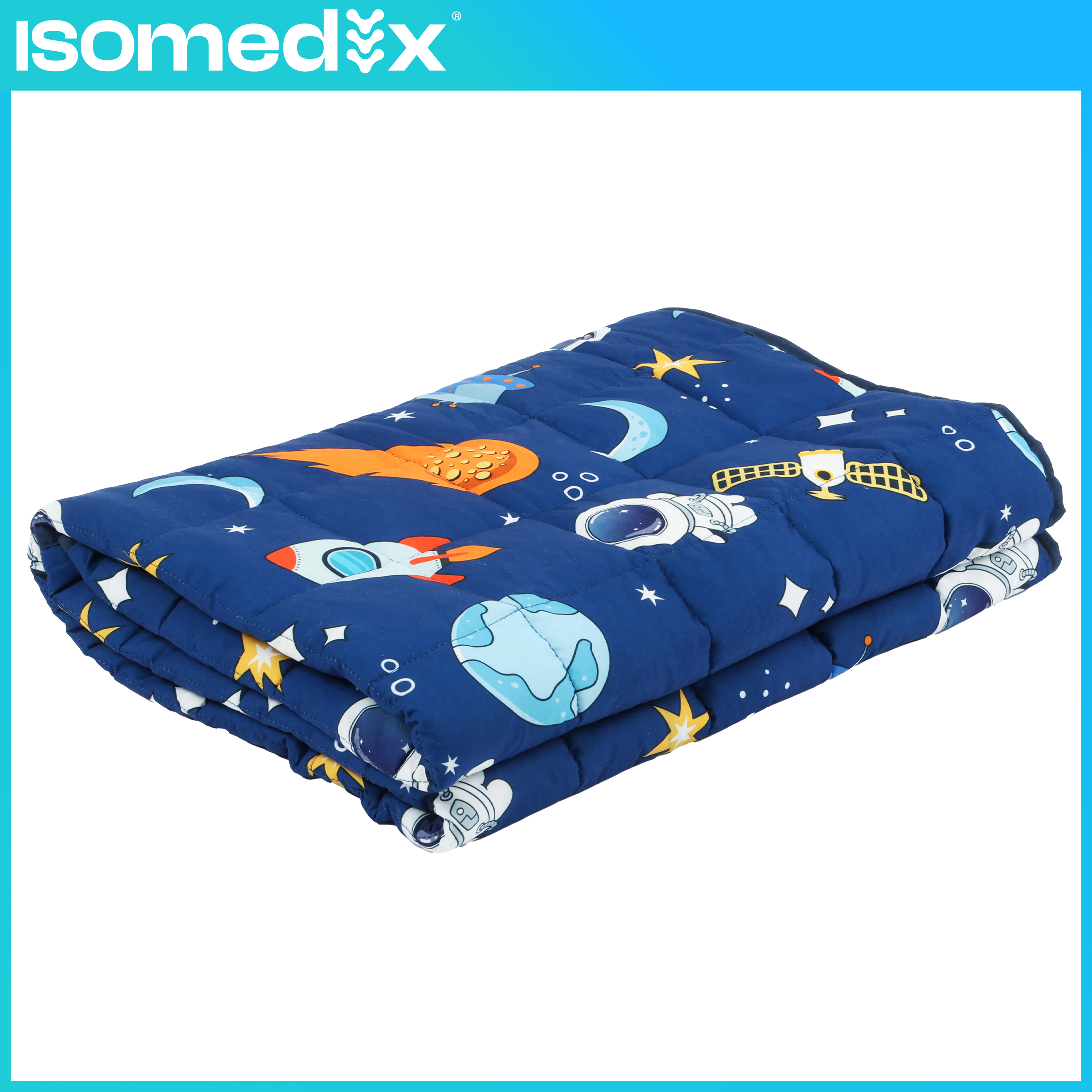 Pehmed, lapsele sobivad materjalid – meeldiva puudutusega kangas ja lastepärane kosmoseteemaline muster teevad teki kasutamise lapse jaoks atraktiivsemaks.