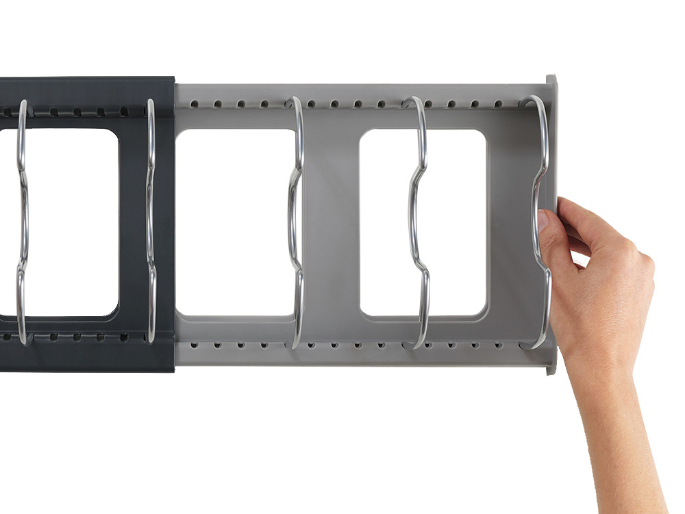 See praktiline köögitarvikute hoidja aitab hoida korras erinevaid kööginõusid nagu potikaaned, pannid, potid, lõikelauad ja küpsetusvormid. Unusta segadus sahtlites ja kaitse oma köögitarvikuid kriimustuste eest!