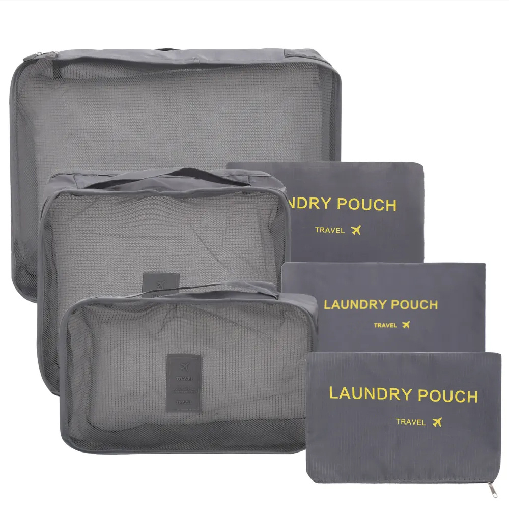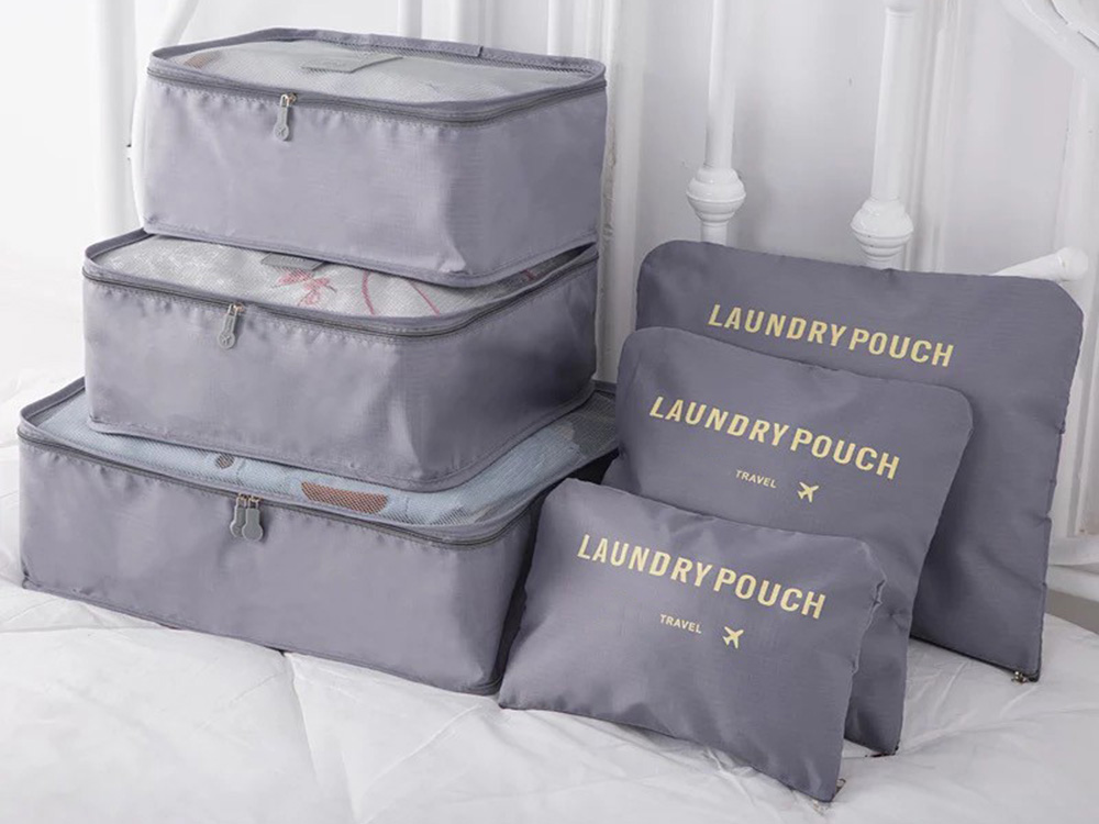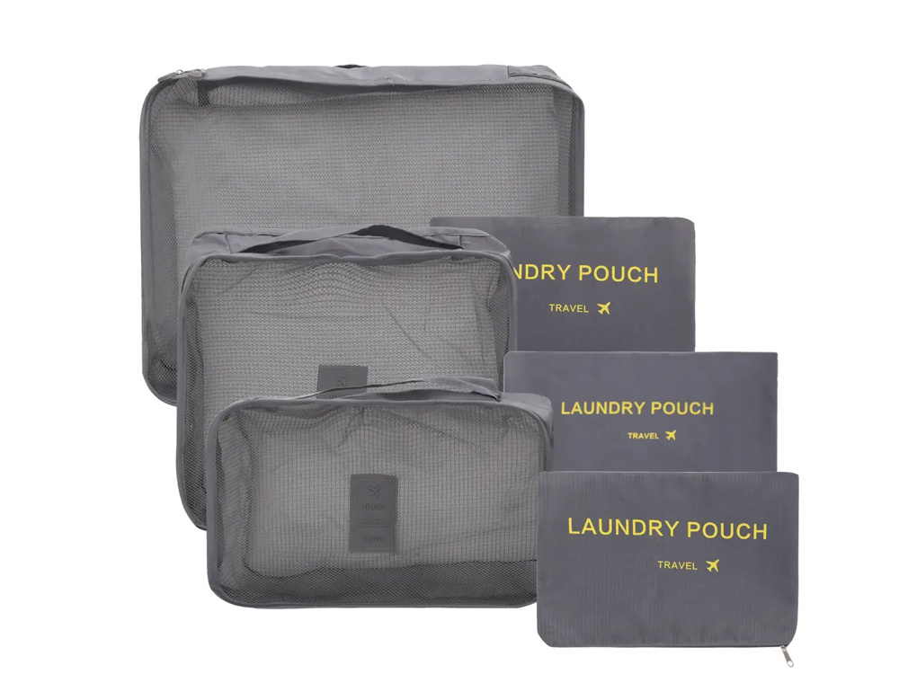 Reisikomplekt kuuest hallist kotist aitab sul organiseerida kõik vajaliku reisi jaoks. Sobib ideaalselt pesu, jalanõude, riiete ja kosmeetika pakkimiseks ning pesu hoiustamiseks.