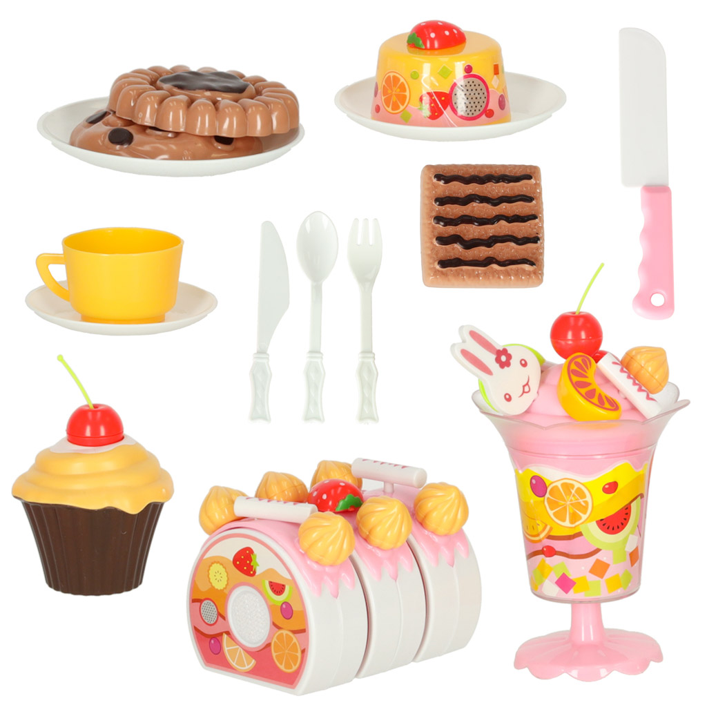 - Turvaline mängunuga ja serveerimistarvikud – komplektis on plastikust nuga, tordilabidas ning söögiriistad, mis toetavad rollimängu ja õpetavad serveerimise põhitõdesid.