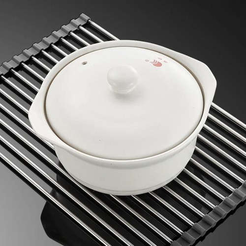 Rullitav nõudekuivatusrest on praktiline lahendus, mis aitab hoida köögitasapinna korras ja organiseeritud. See võimaldab teil nõusid kuivatada ilma vett laiali pritsimata, säilitades köögis puhtuse ja korra. Lisaks saab seda kasutada kuumade pottide ja nõude alusena.