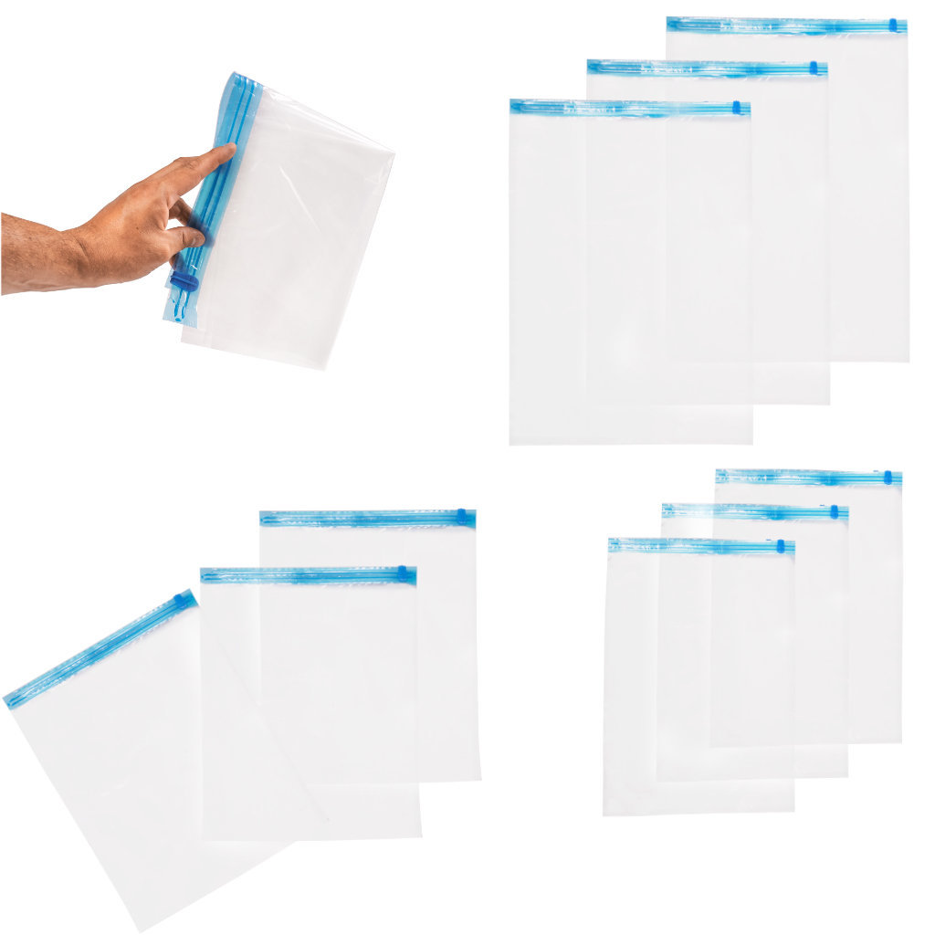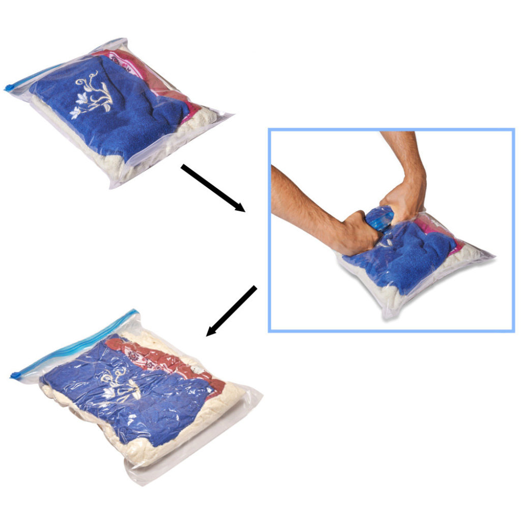 * Ideaalne komplekt reisimiseks ja matkamiseks – kotid on sobiva suurusega kohvrisse panemiseks ning tänu rullitavale süsteemile saad pakendada ka kohas, kus tolmuimejat ei ole. Vaakumkottide abil mahub kohvrisse oluliselt rohkem riideid! Looduses matkates on lisahüveks ka see, et riided püsivad kuivad ja puhtad ka siis kui kott peaks märjaks saama .