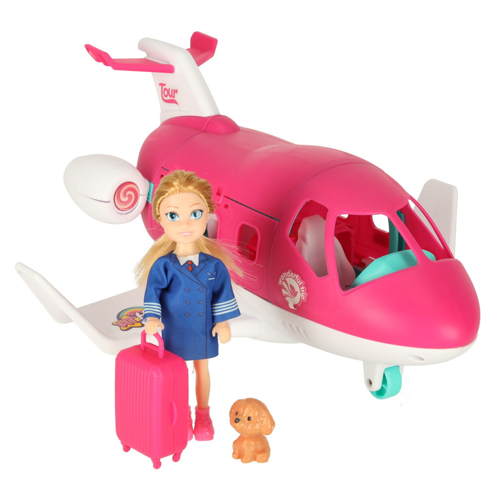 - Lelustewardess: Komplektis on nukk-stewardess, kellel on kaasas kohver ja armas koerake, samuti ligipääs suupistekäru juurde lennukis.