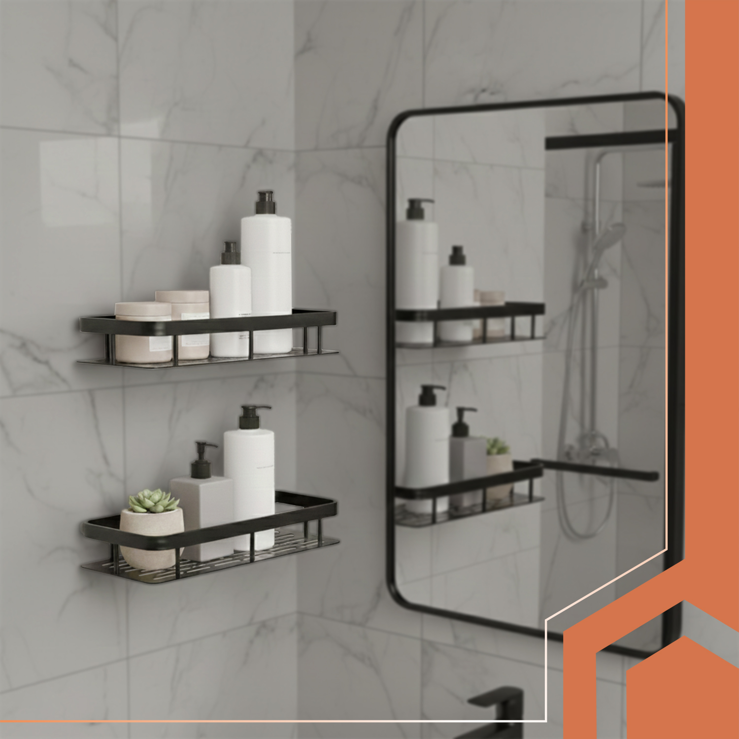 Praktiline ja stiilne riiulikomplekt aitab hoida vannitoa või köögi korras, säästab ruumi ning sobib suurepäraselt igapäevaste tarvikute hoiustamiseks.