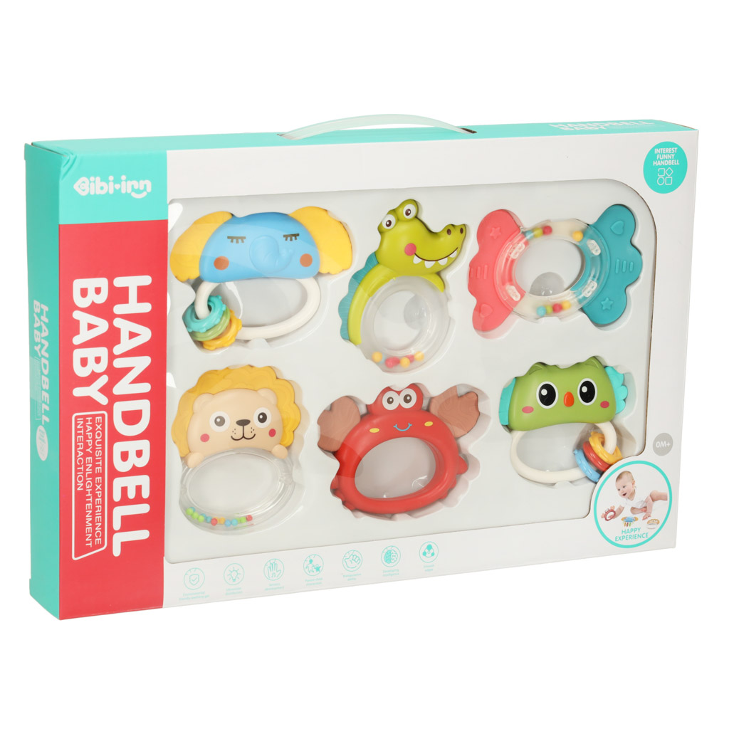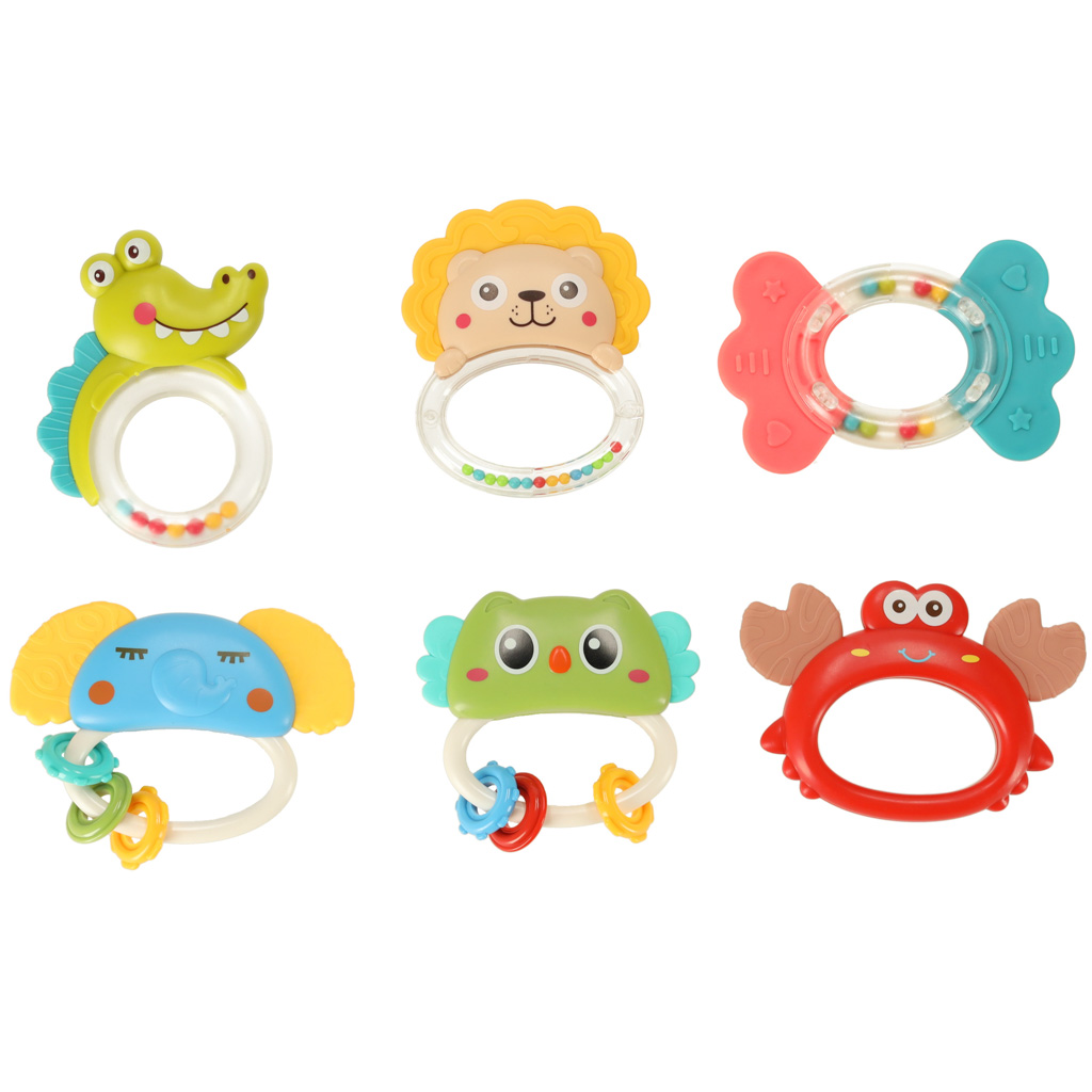 Komplekt sisaldab kuut erinevat värvilist mänguasja, mis on ideaalne kaaslane lapse esimestel mänguhetkedel.