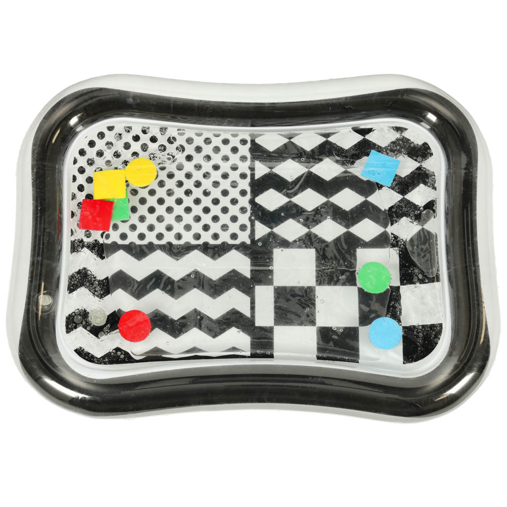 * Vesi loob liikuva ja põneva pinna, kus värvilised geomeetrilised kujundid ringi hõljuvad ning lapse liigutamise peale liikuma hakkavad. Kontrastsed detailid köidavad lapse tähelepanu.