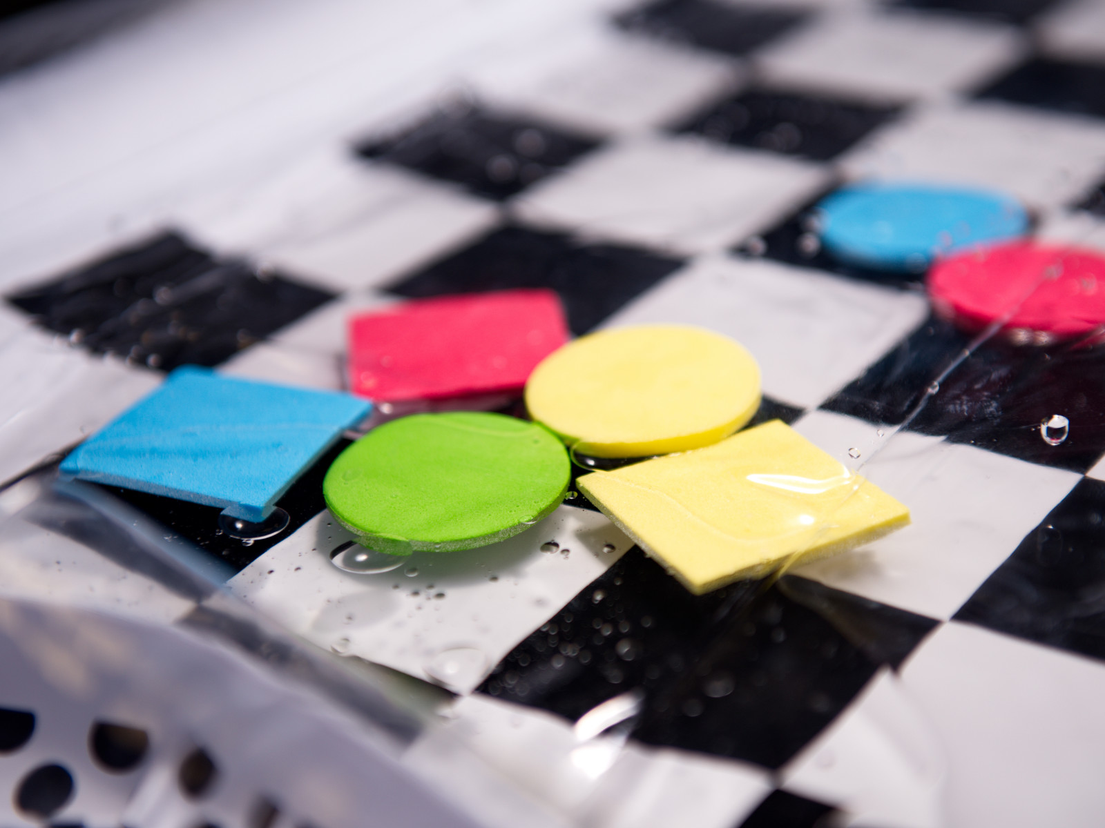 * Vesi loob liikuva ja põneva pinna, kus värvilised geomeetrilised kujundid ringi hõljuvad ning lapse liigutamise peale liikuma hakkavad. Kontrastsed detailid köidavad lapse tähelepanu.