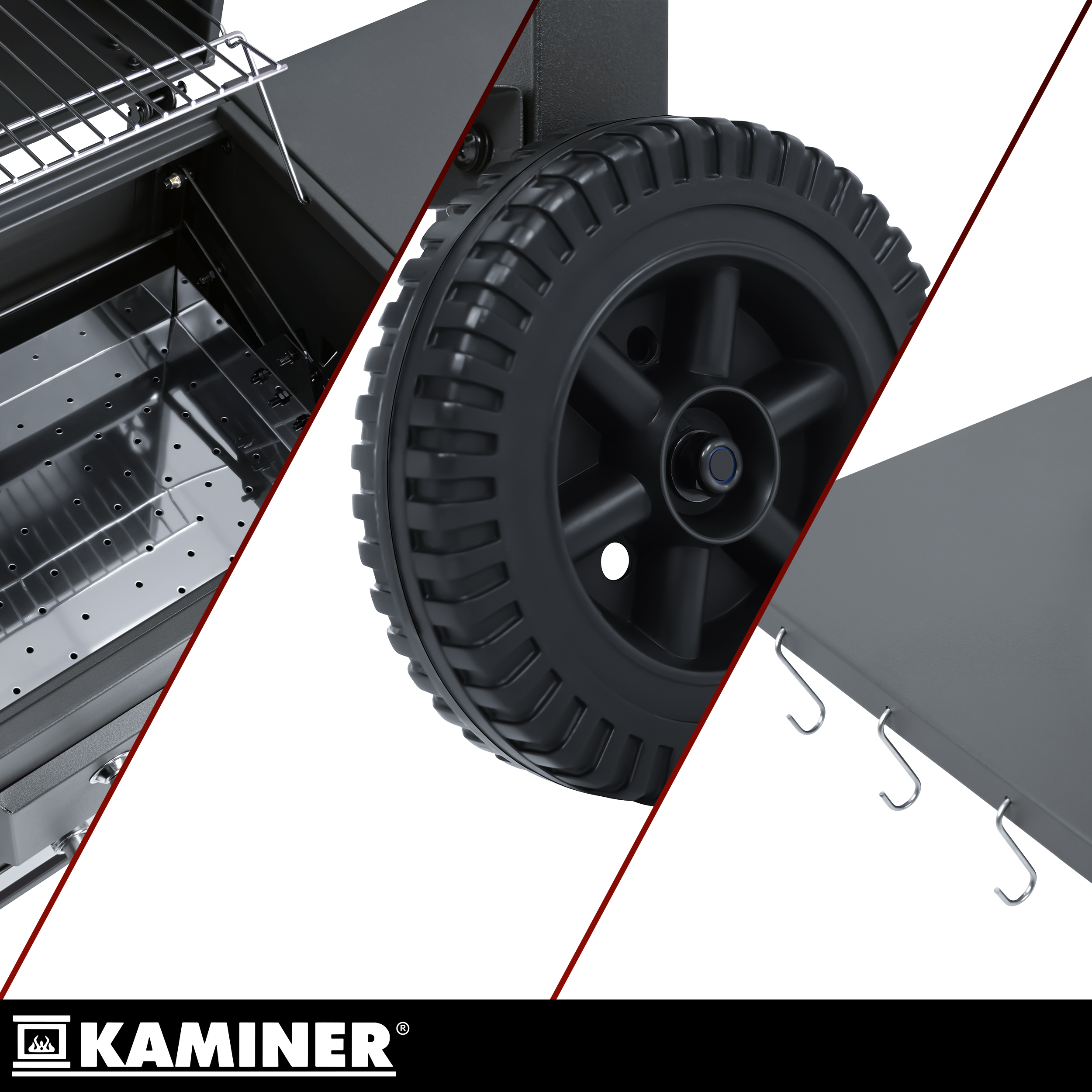 - Reguleeritava kõrgusega söekamber, 3 taset – saad kuumust muuta ilma toitu ümber tõstmata