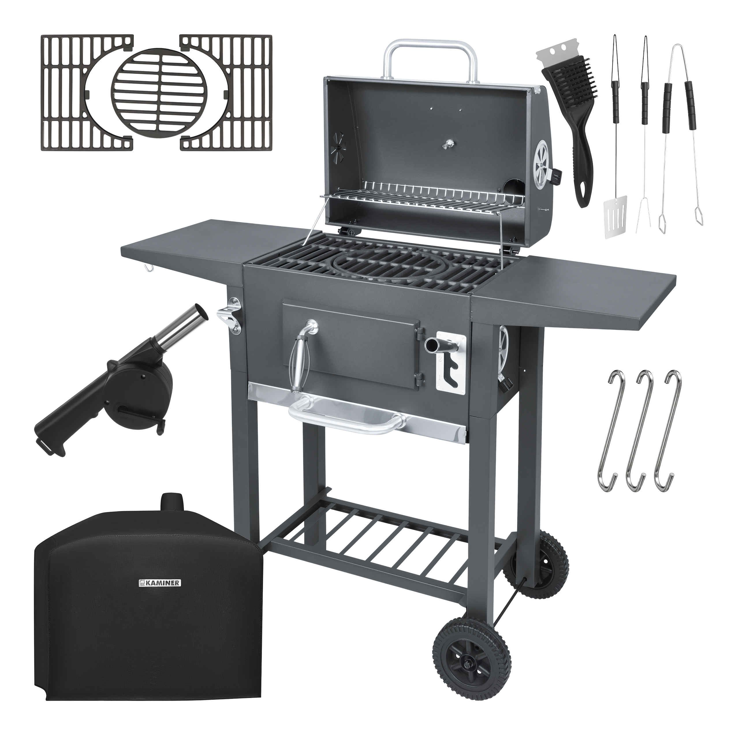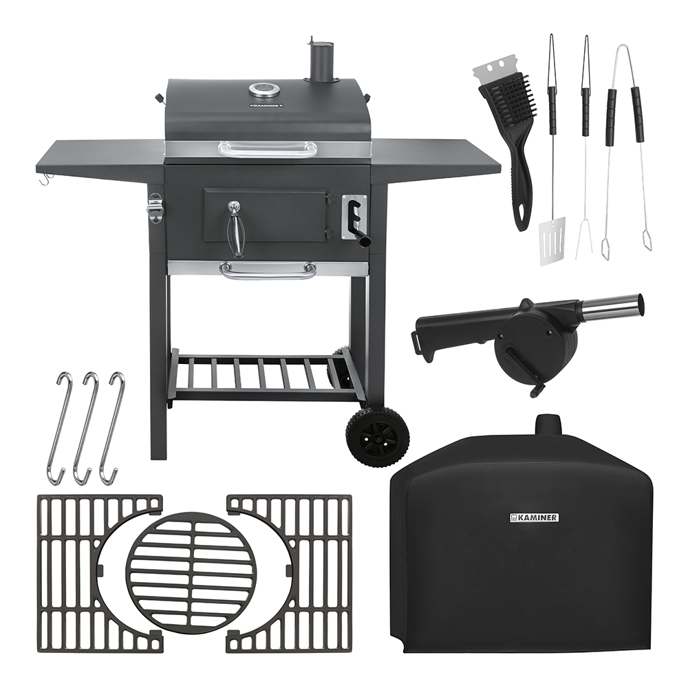 Tugev ja praktiline söegrill sobib hästi aeda, terrassile ja suvilasse, kui soovid grillida stabiilsema kuumuse, parema kontrolli ja mugavama töökorraldusega. Kaane sisse ehitatud termomeeter, reguleeritava tõmbega korsten, 3-osaline emailitud malmrest ja reguleeritava kõrgusega söekamber aitavad saavutada ühtlasema küpsustulemuse. Lisaks annavad kaks külgriiulit, alumine riiul ja kaasasolevad tarvikud võimaluse luua tõeliselt mugav grillimisjaam.