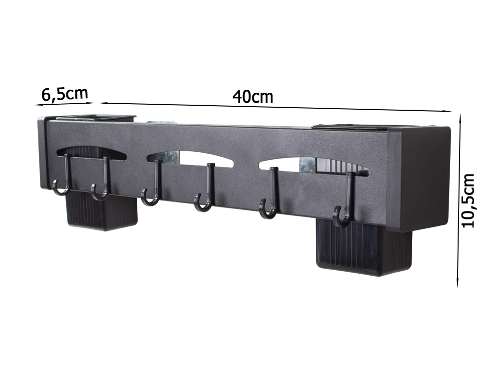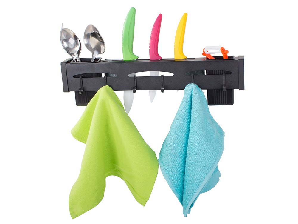 - Varustatud kuue eemaldatava konksuga, millele saab riputada rätikuid ja köögitarvikuid.