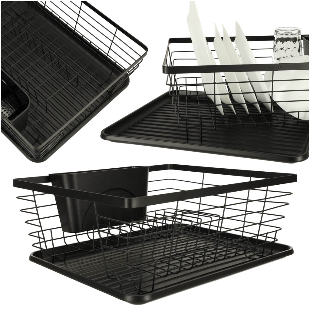 - Mõõtmed: Suur kuivatusrest: 36 cm x 30,5 cm x 14 cm, Söögiriistade hoidik: 19,5 cm x 7 cm x 10 cm, Plastikust matt: 36 cm x 29 cm
