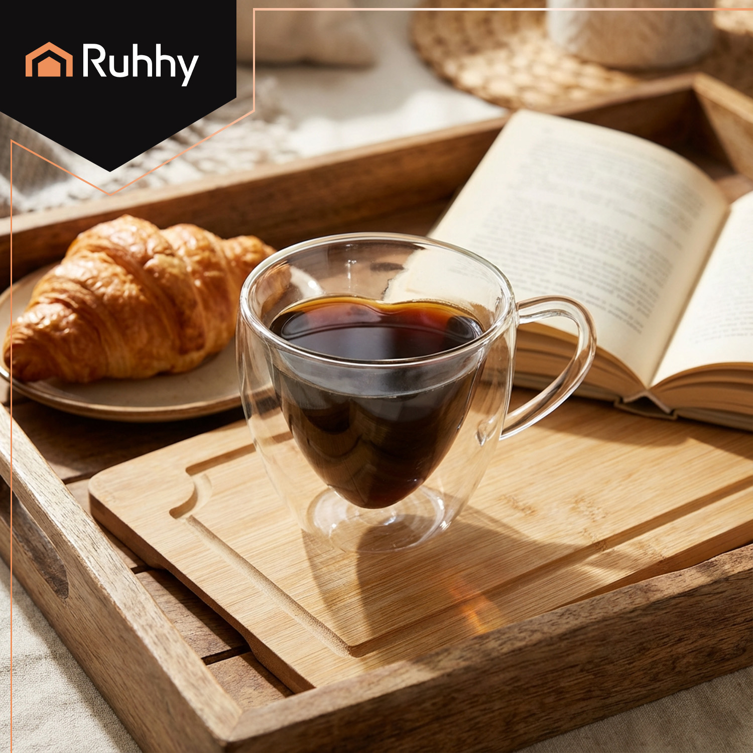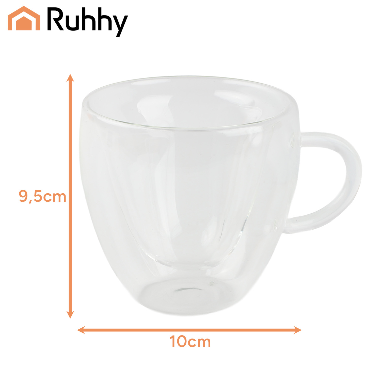 - Kahekihiline termoisolatsioon hoiab temperatuuri kauem – kuum jook püsib kauem soe ja külm jook kauem jahe, samal ajal kui klaasi välispind ei kuumene ebamugavalt, nii et saad klaasi hoida ka siis, kui sees on väga kuum kohv või tee.