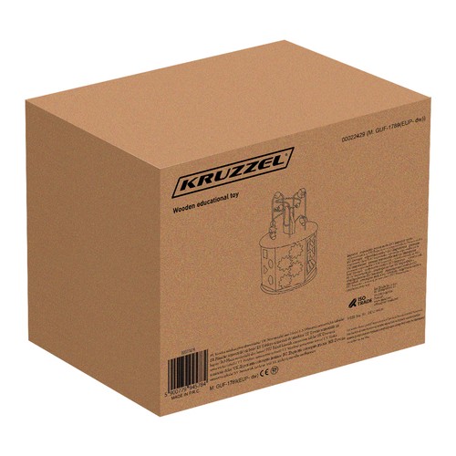 * Külgedel erinevad liikuvate osadega mängud – aukudega kujundisorteerija, keeratavad numbrikotsid (ühel pool number, teisel pool vastav arv esemeid), arvelaud loendatavate nupukestega, liikuvad hammasrattad, loogikamäng, kus tuleb nupukesed õigele kohale lükata, seieritega kell