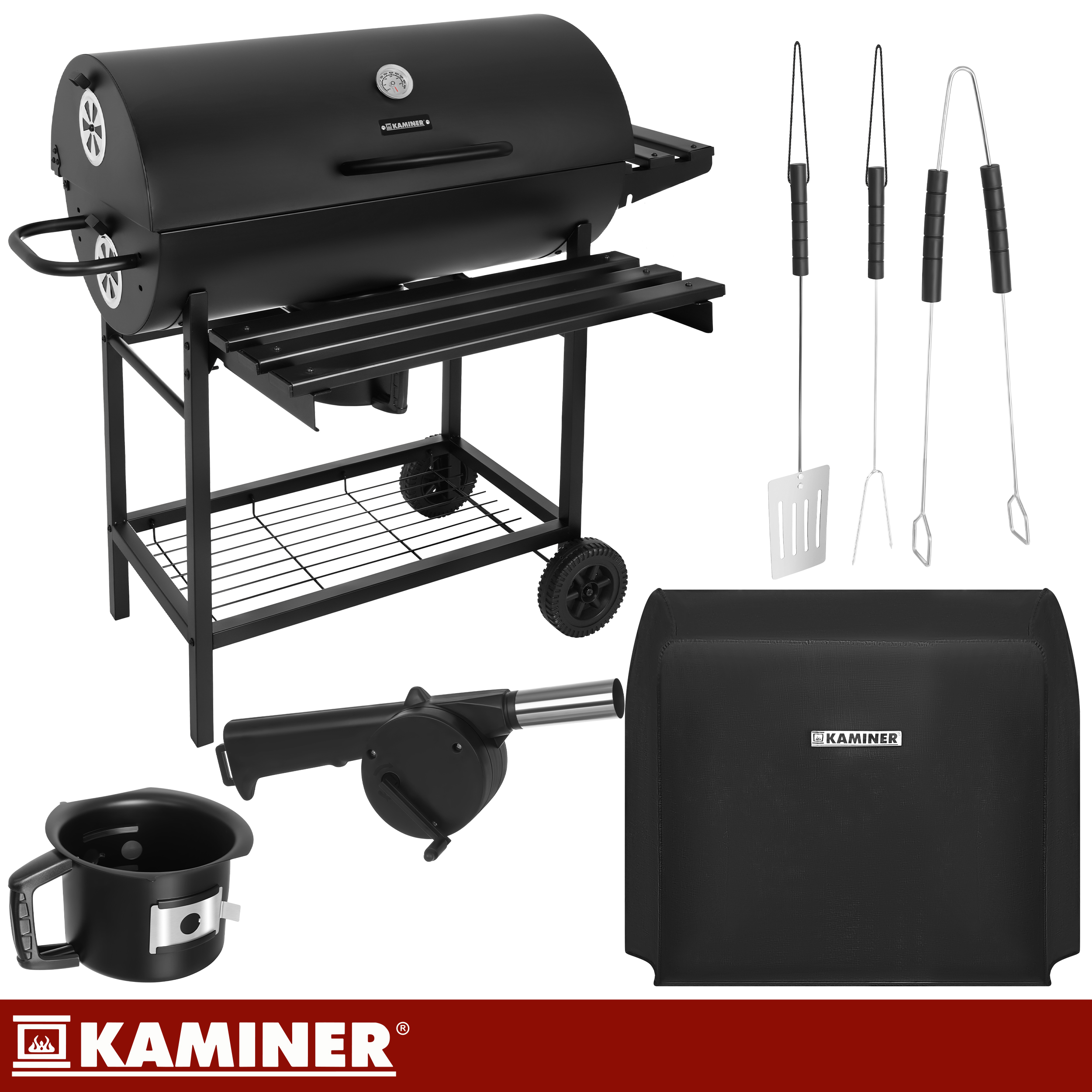 Suur söegrill + kate ja lisatarvikute komplekt