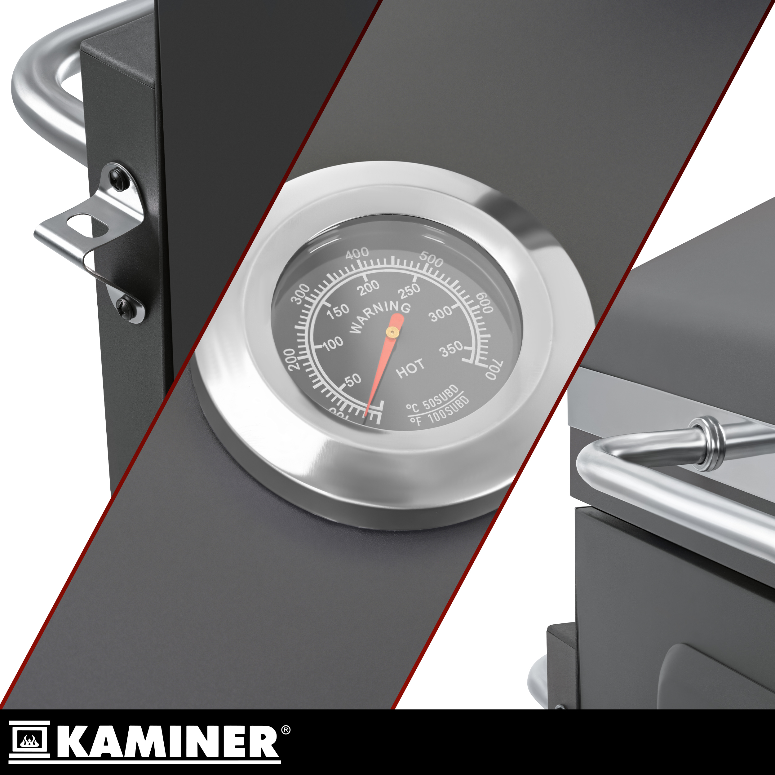 - Kaane sisse ehitatud termomeeter – võimaldab jälgida küpsetustemperatuuri ilma kaant pidevalt avamata, mis aitab hoida kuumust stabiilsemana