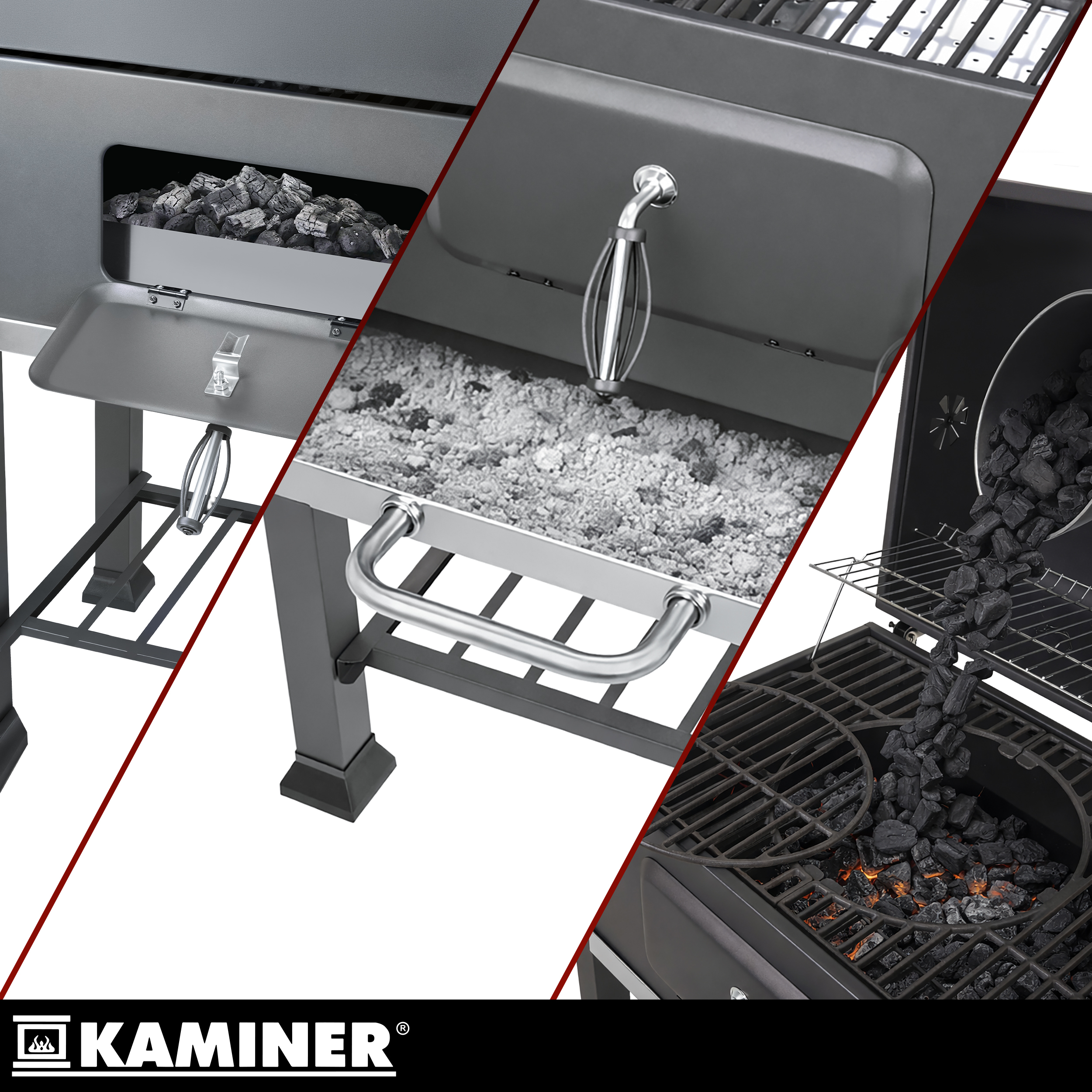 - Väljatõmmatav tuhasahtel – muudab tuha eemaldamise puhtamaks ja mugavamaks ning aitab säilitada stabiilsemat õhu liikumist