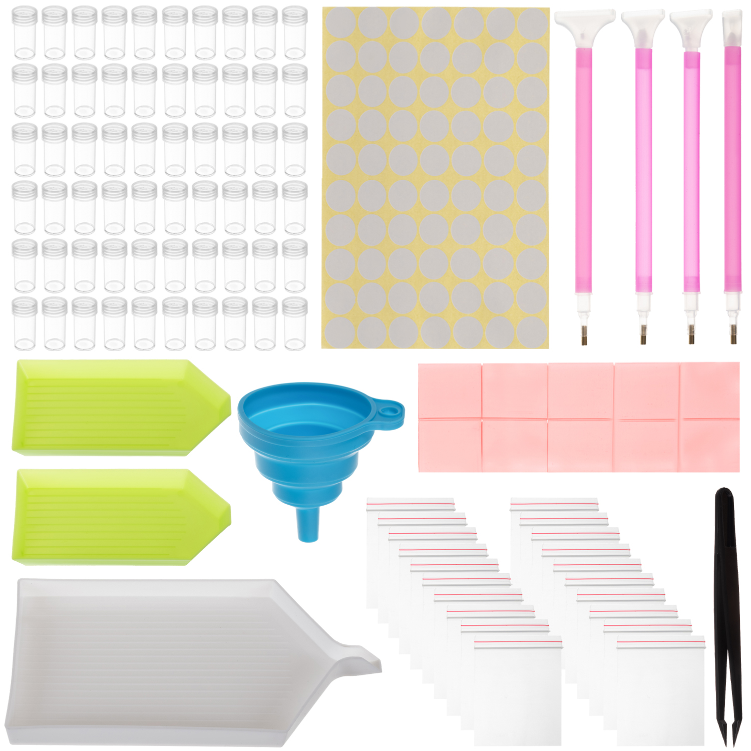 60 keeratava kaanega purki – igal purgil on oma koht ning kruvitav kaas, mis hoiab teemandid turvaliselt sees. Kaasas on kleebised värvide märgistamiseks, et sorteerimine oleks lihtne ja täpne.