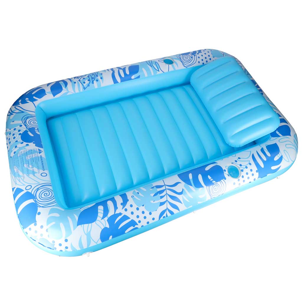 - Mugav õhkpadi – komplektis olev täispuhutav padi toetab pead ja kaela, et saaksid pikalt lebada ilma pingeta ning nautida päikest või rahulikku veepealset puhkust.