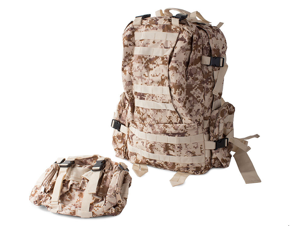 Plecak turystyczny w motywie wojskowym, przypadnie zarówno miłośnikom wspinaczek górskich jak i miłośnikom militariów.