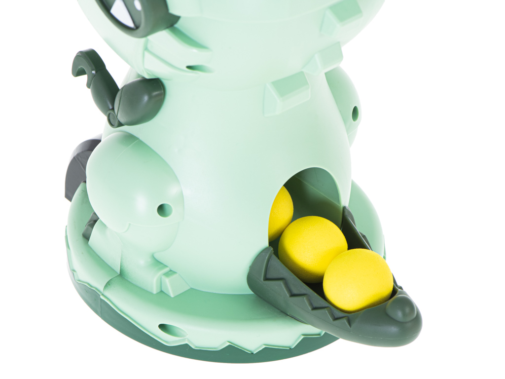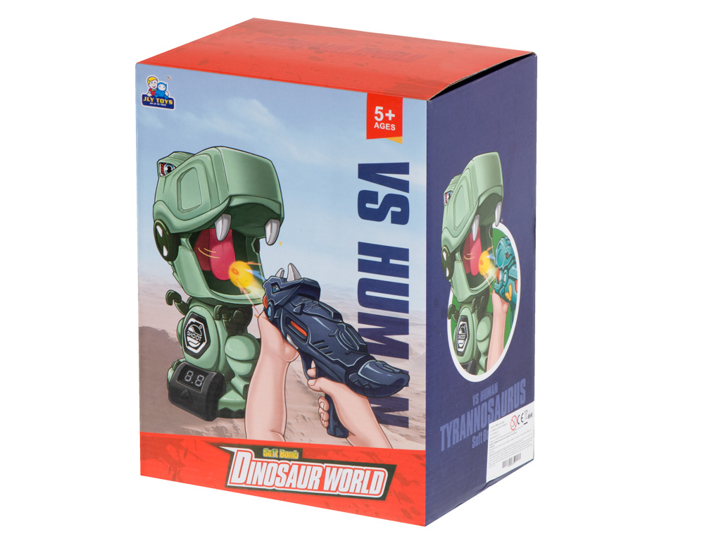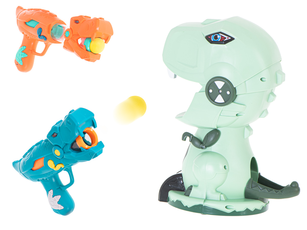 - LED-punktiarvestus tabamuste lugemiseks – dinosauruse all olev LED-ekraan loendab punkte iga tabamuse eest suu piirkonda. Nii on lihtne teha ausaid võistlusi: “10 lasku – kes saab rohkem punkte?” või “60 sekundit – kes jõuab rohkem tabada?”.