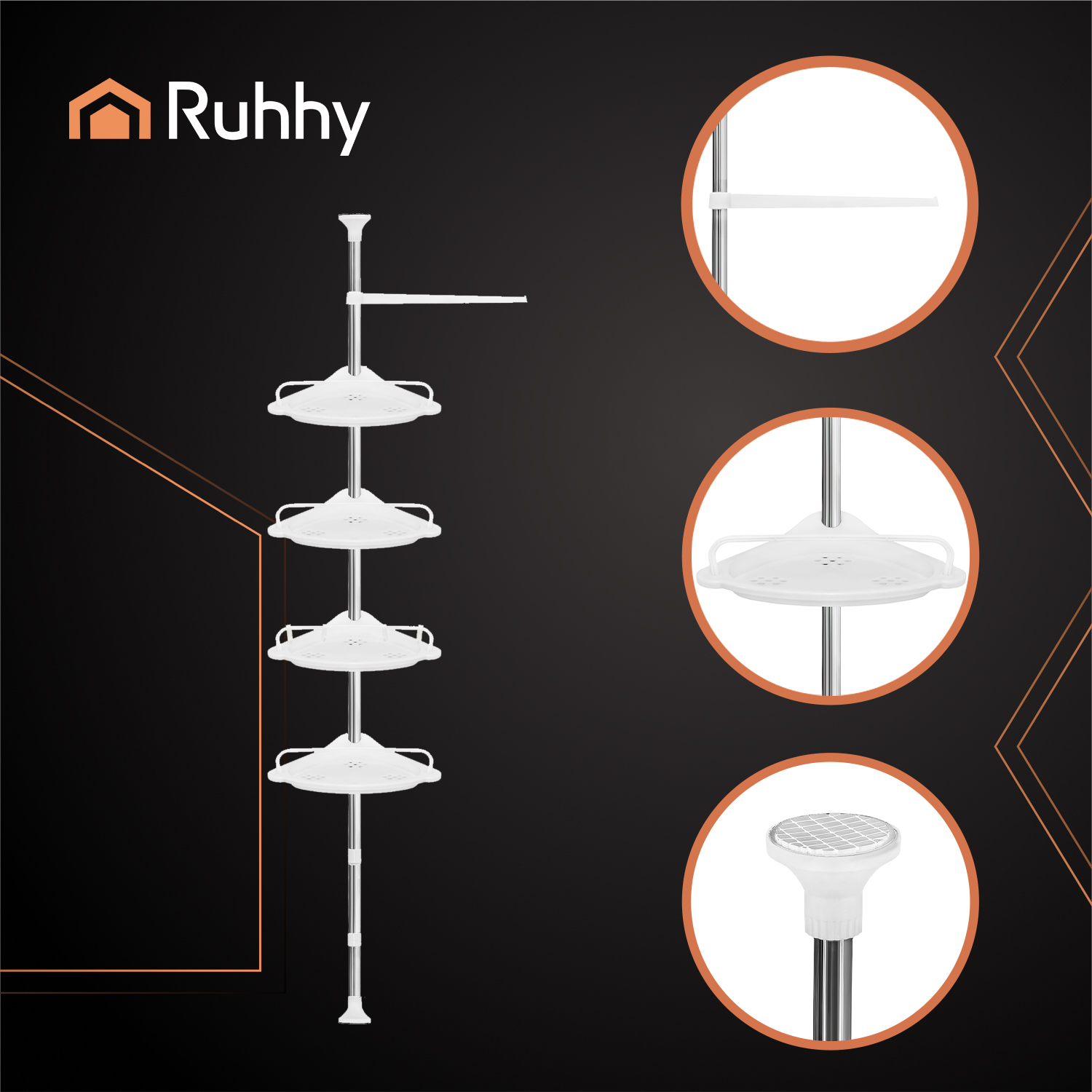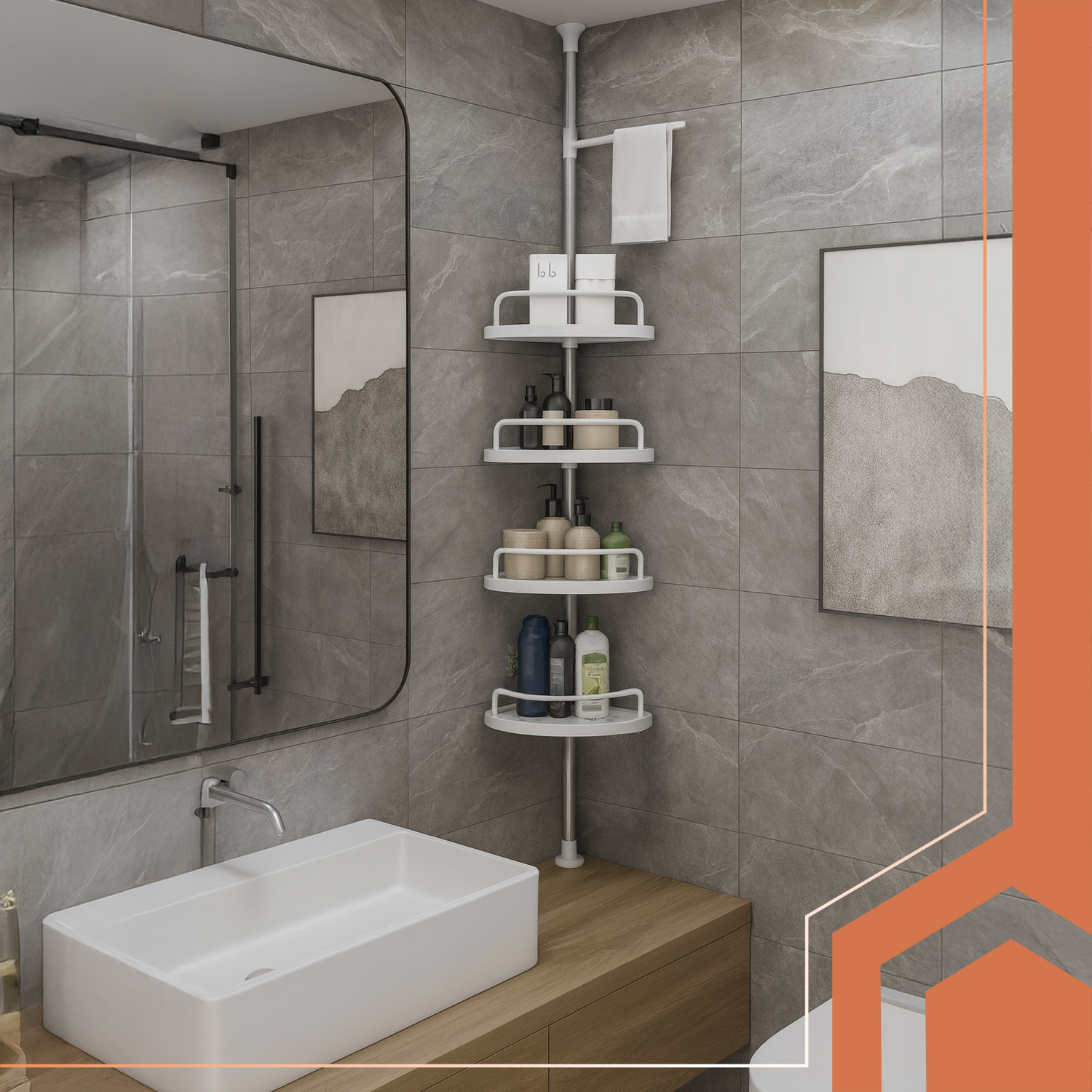 Teleskoopvarrega nurgariiul vannituppa – 240–310cm, 4 tasapinda + konksud + rätikuhoidja