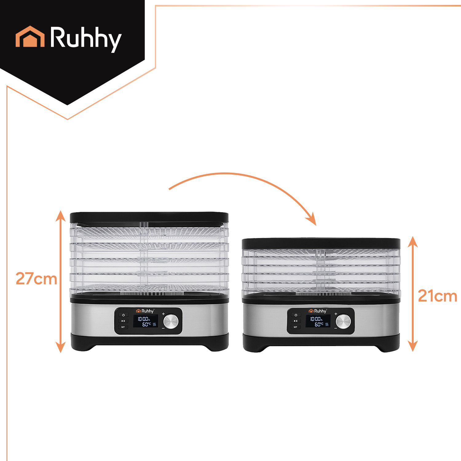 - Suur mahutavus – 10 liitrit; 5 kandikut võimaldavad korraga suuremaid koguseid kuivatada.
