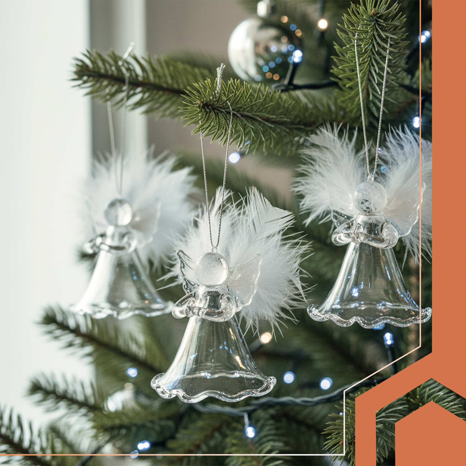 - A BIT OF HEAVENLY MAGIC – suspended on the branches of the Christmas tree, transparent angel pendants create a captivating display of heavenly beauty . Illuminated by Christmas lights, they will create a magical effect, emphasizing the festive atmosphere of the room. During the day, the transparent material reflects sunlight, creating a shimmering effect that adds a magical touch to the tree. Delicate feathers sway with the movement of the air, evoking a sense of angelic grace.