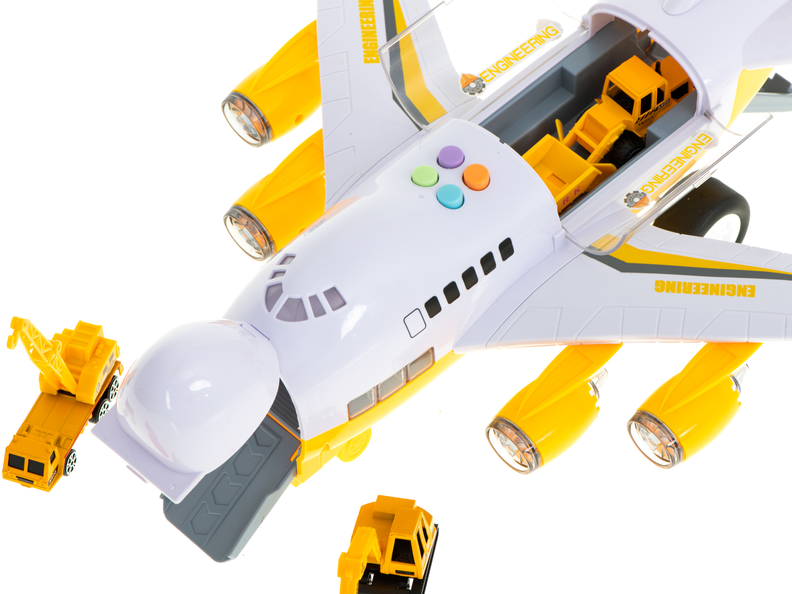 - Lihtne juurdepääs: Lennuki nina ja ülemine osa on avatavad, võimaldades lastel hõlpsasti autosid sisse ja välja laadida.