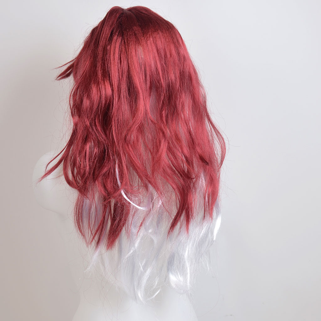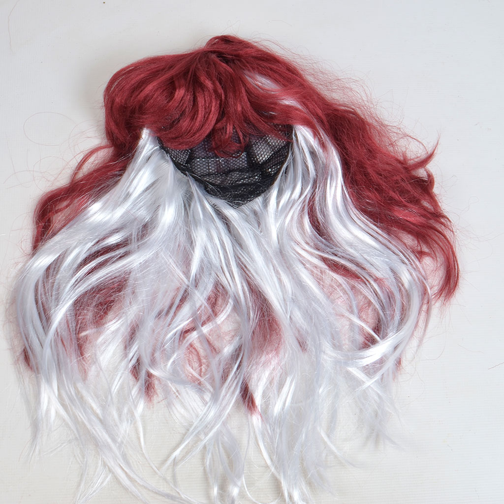 * All pikad valged juuksed, peal veidi lühemad tumepunased juuksed, ees tukk