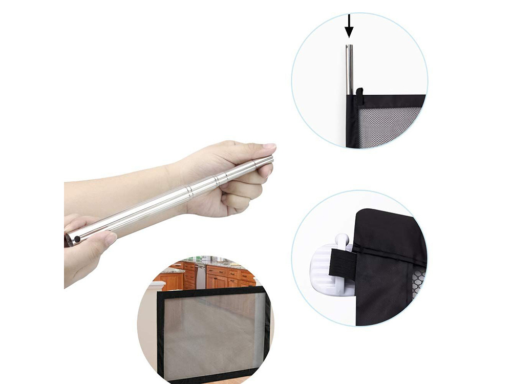 Komplekti kuulub turvavõrk, kaks teleskoopvarrast ja neli isekleepuvat konksu.