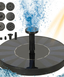 * Purskkaevul on 8 erinevat otsikut + erinevad ühendusdetailid, mis võimaldab veejoa sättida just endale meeldivaks. Veejoa maksimaalne kõrgus 30-55cm, pumba võimsus 0,5 -0,85W, maksimaalne veevool 150L/h