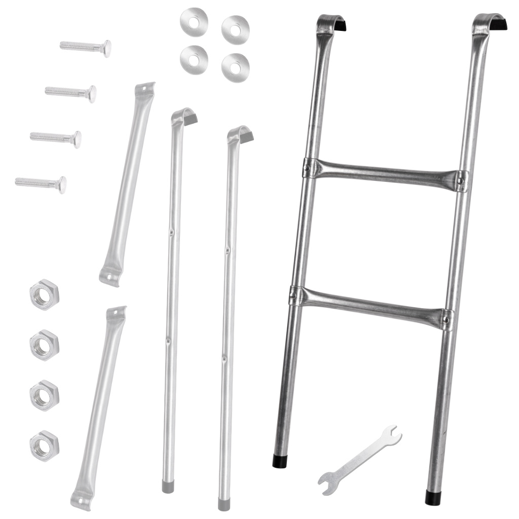 - Lihtne paigaldus: Redel on varustatud kinnituskahvlitega, mis võimaldavad kiire ja turvalise kinnitamise trampoliini raamile.