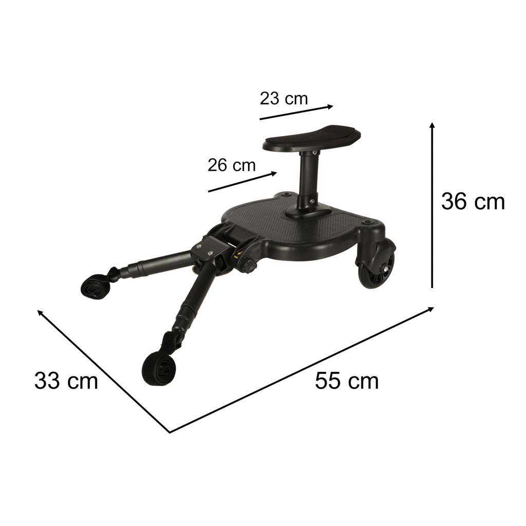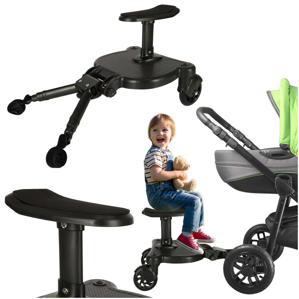 Jalutuskäik kahe lapsega ühes kärus? Selle kärulisamuti abil on see võimalik! Kui vanem laps väsib kõndimisest, saab ta istuda või seista samuti peal ja jätkata mõnusat jalutuskäiku.