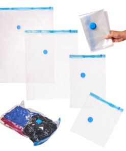 * Väga lihtne kasutada – pane esemed kotti, sulge kinnitusriba ja ime õhk tolmuimeja või pumbaga spetsiaalse ventiili kaudu välja (sobib iga tavaline kodutolmuimeja)