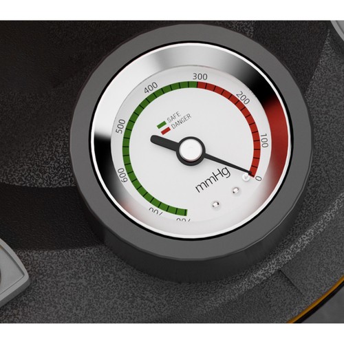Integreeritud manomeeter (0–760 mmHg) – kuvab vaakumitaseme reaalajas; kui näit langeb, saab pumpa lisavaakumi tekitamiseks uuesti vajutada.