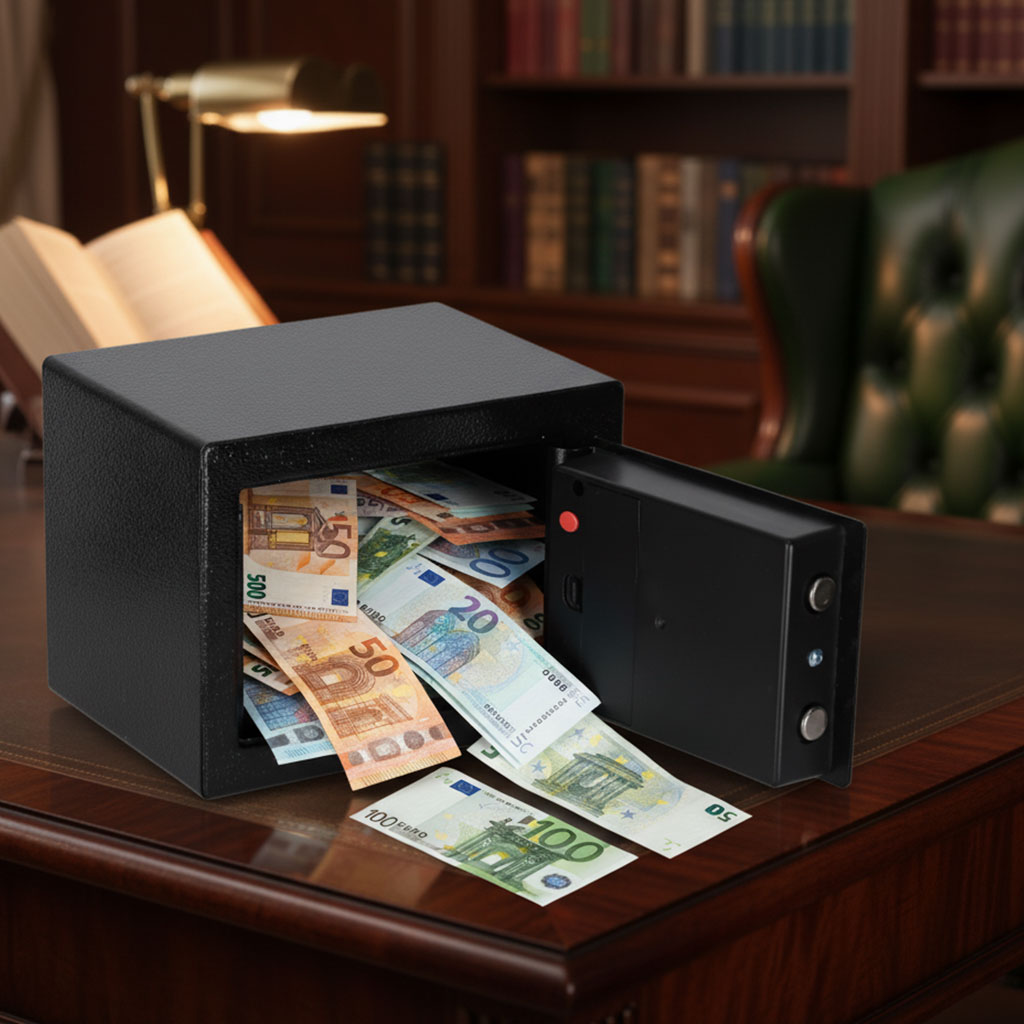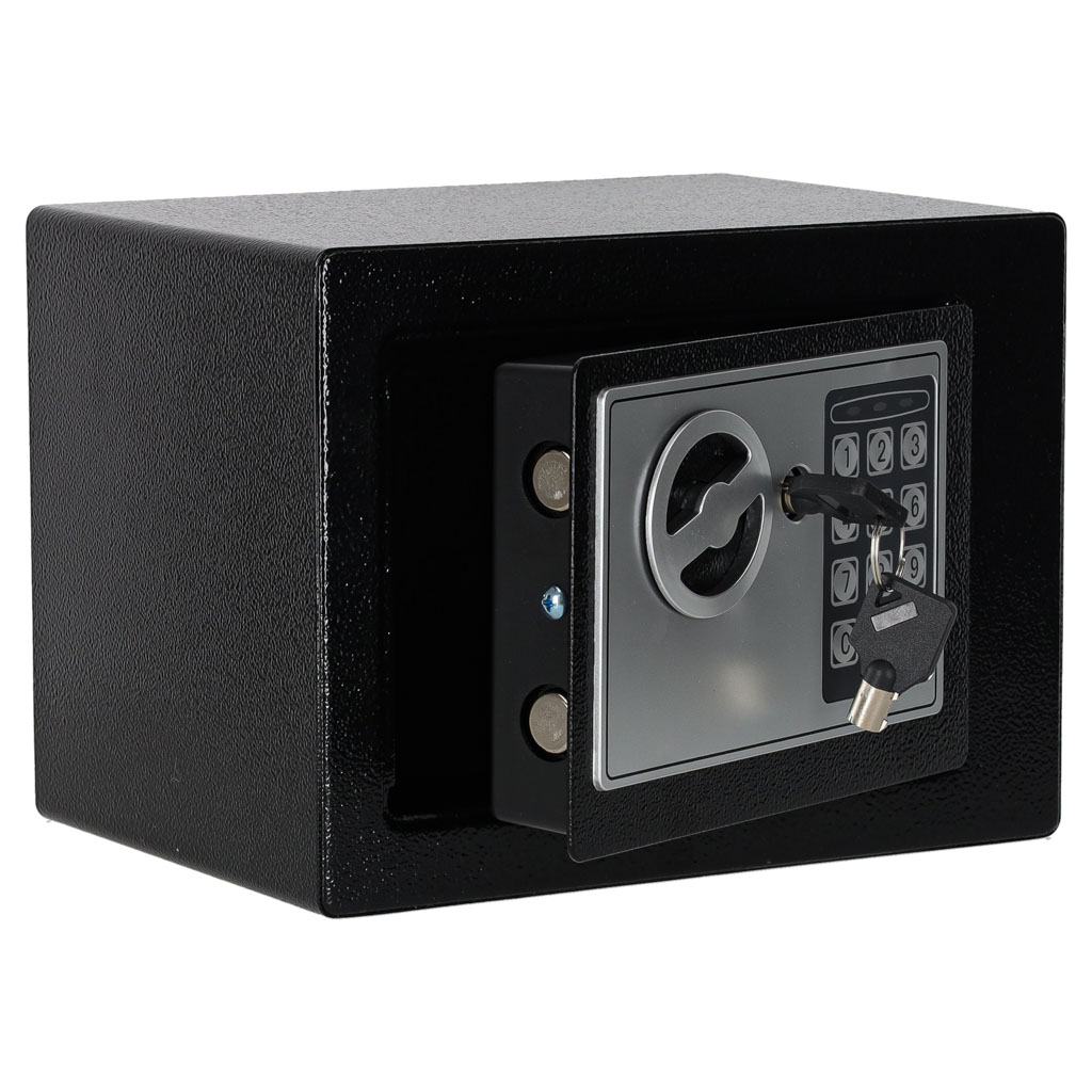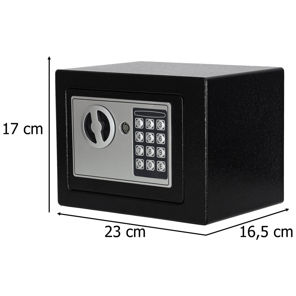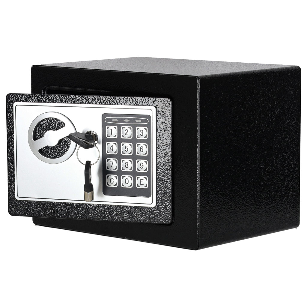- Kaks avamisviisi – seifi saab avada võtmega või numbrilise koodiga, mis annab kasutajale rohkem paindlikkust igapäevases kasutuses