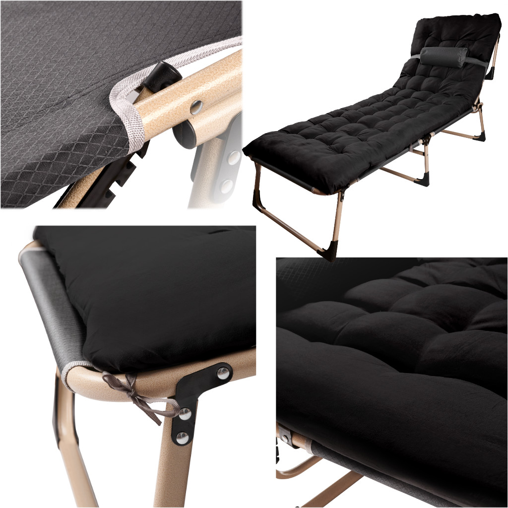 * Kokkupandav lamamistool-voodi, mida saab kasutada kodus täiendava magamiskoha loomiseks, väljasõidule kaasa võtmiseks või ka lamamistoolina aias või terrassil pikutamiseks ja lõõgastumiseks.