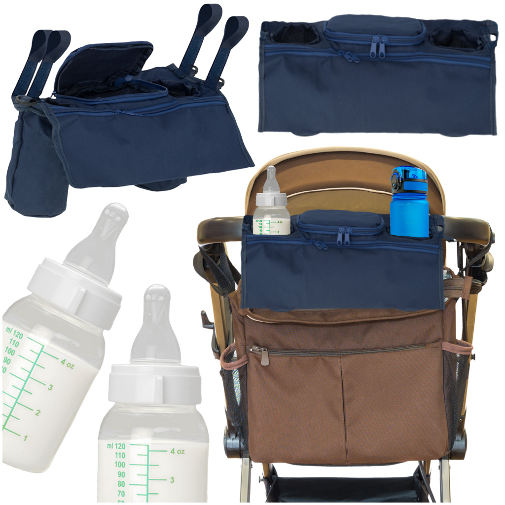 2 avatud pudelitaskut – mugav panna sisse joogipudel või lutipudel ning võtta see ühe käega välja.